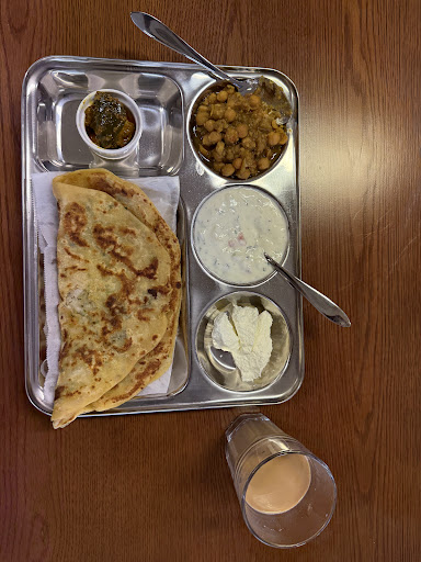Our hotel Irish Inn highly recommended us about this restaurant that just opened. We stopped by to pickup some quick eats. Unlike many Indian restaurants this one stood out for its cleanliness. Friendly staff greeted us with a smile. I wanted goat curry and he told me that it just got done cooking and will be ready in few minutes. Once the food was ready, he made sure I had extra napkins, forks and plates to go as well. Price was very reasonable and the goat curry was the GOAT. My wife had some garlic naan which was fresh and warm. She enjoyed it. We saw that they also have a buffet daily from 11 to 4 pm as well. My wife is not a fan of hot spicy food. So, I had them make the goat curry with medium heat and it was perfect for her as well as me. I highly recommend...