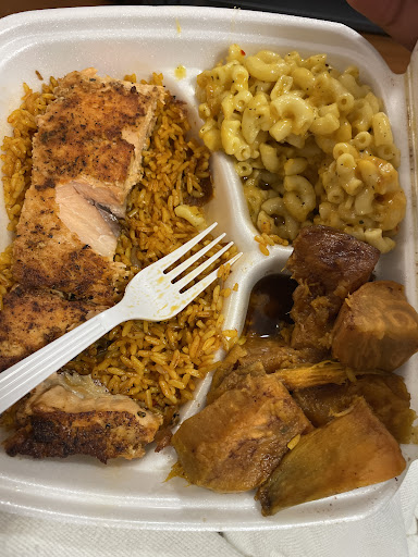 Ā Ā Ā Read moreThe service was just okayā¦.. I asked for my rice platter to not have onions and peppers , she told me that she could only do it because it was my first time coming there. If that is the case iāll probably not order this again but I HATE onions and peppers. I got the Salmon fried rice with spinach i wanted to add chicken but I couldnāt do that so I had to Add another platter so I got Jerk Chicken Platter with macaroni and cheese and yams. The Macaroni wasnāt cheesy AT ALL. The yams were not sweet either. When I got my platter I STILL had onions and peppers in my platter ā¦ā¦ā¦ My friend got salmon and chicken alfredo , she asked the lady if she could get extra sauce with it ( we were MORE than willing to pay for it ) and she told her , we donāt sell ANYBODY asked sauce , our alfredo creamy enough ! when my friend got her food , she said it in fact was not creamy enough to her liking and it was more so watery. All in All the only thing I would get is the rice...