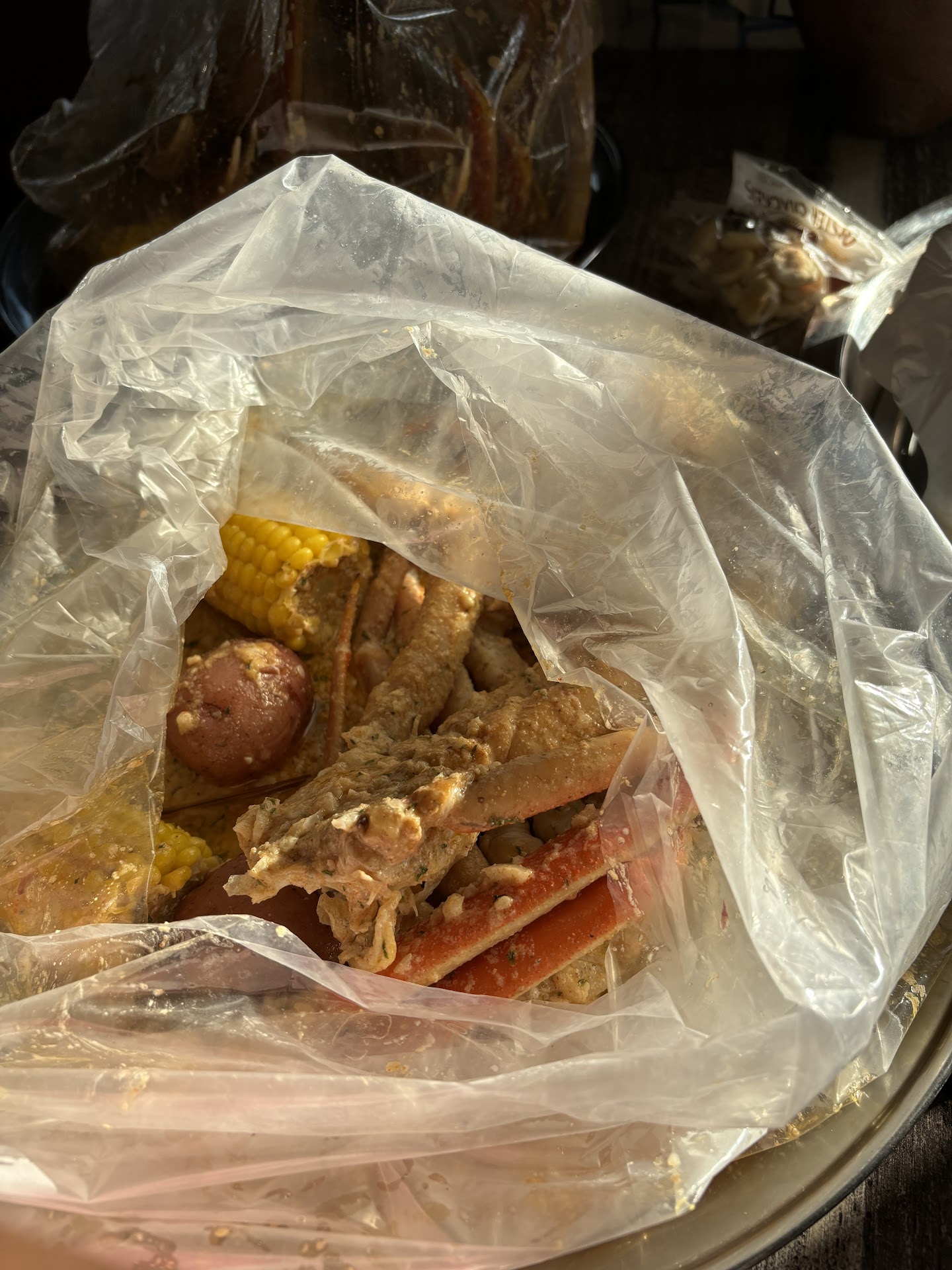 Read moreMy daughter wanted seafood and this is what she chose because I wasn’t driving to Philly to go to ocean crab. They were a sad looking bag of seafood, hardly any sauce in the bags and she asked for a lot of sauce. Everything is dry she can’t dip the potatoes or anything in any sauce because there isn’t really any. Hush puppies were ok a little dry but good. Next time ocean crab buffet on...