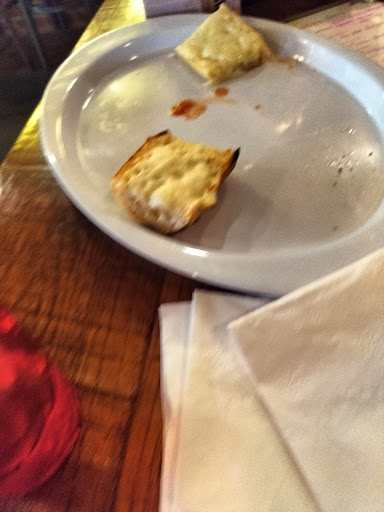 We ordered garlic cheese bread and it was served with marinara sauce; it was a large portion and easily shared between three people (had leftovers to take home, actually).