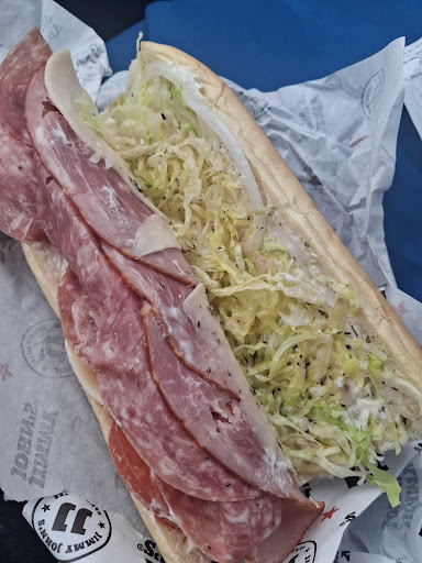 This particular Jimmy John's is pretty solid for what they are. Food is consistently boring here and fast to match. I find myself wondering, "What does it mean to be a 5 star restaurant on Google?" Jimmy John's is obviously not a fine dining experience. I don't think anyone would confuse it as such. So, on the scale of 1 to 5, one being a really bad Jimmy John's, and five being a really great Jimmy John's, I gave this a 5. I mean, it wasn't exceptional or anything. They made my food and gave it to me. The food was exactly what I expected. Honestly, the margins are tight here. I feel like a 4 is more appropriate because a "5 for perfect" seems a little disengenuous, but I also don't have a reason to give 4 stars because nothing was wrong. It just wasn't that good, because that's exactly what you expect when you set the bar low enough that you don't have to jump, you can just kind of awkwardly...