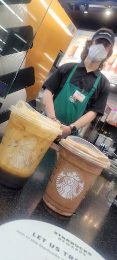 They should probably have some experienced Starbucks baristas in this location to properly train new employees to make common Starbucks drinks. I ordered an iced cappuccino, and the people behind me ordered one also plus a Frappuccino ... the employee working had to flip through a book to make each drink and it took her quite a long time. She was by herself with no one helping and she clearly was uncomfortable and unsure with the...