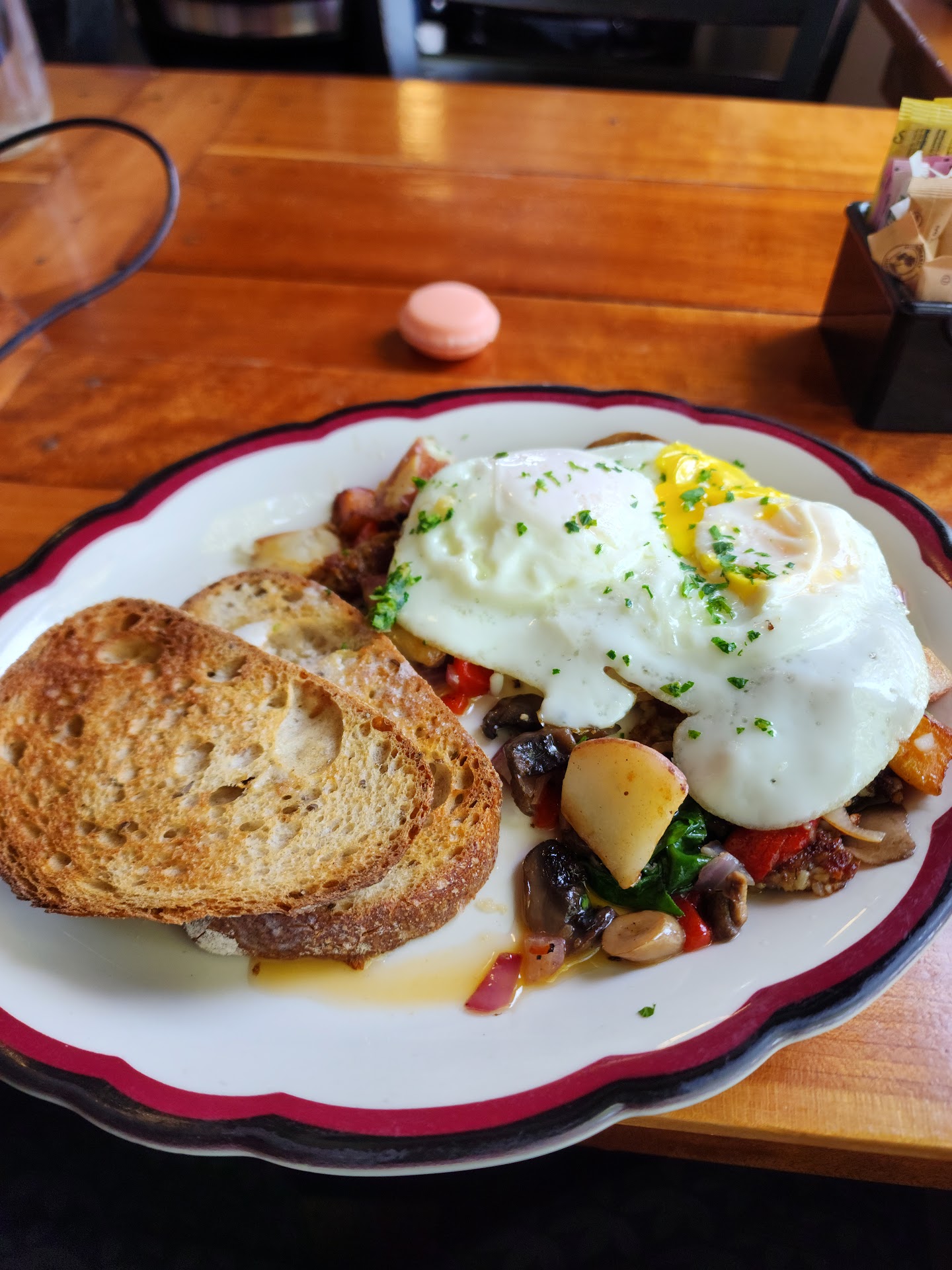 Read moreThis was the first time I’ve ever visited this cafe and after a quick check on Google we found parking easily in the back. Upon walking up to the front you are immediately greeted with an adorable cozy entry with tall chair seating/the main counter area. As we were lead to our table it opened up into a long sunroom. For drinks you start off with your own pitcher of water so you can refill at your leisure which to be honest, I wish more places would do. Overall the atmosphere was fantastic! Our waitress as well as many other staff were extremely courteous and thoughtful while checking up on us and bringing what we ordered. I decided to start off with a smooth and tasty blended caramel coffee. As for our food I chose the crème brûlée French toast and OMG! It is THE best French toast I’ve ever had, hands down! Not only was it crispy on the edges, the Texas toast as perfectly battered and cooked just right. The addition of the crème brûlée custard underneath added sweetness without being too sweet. It was served with a side of choice (I chose hashbrown casserole, delicious!!!) and a dollop of whipped cream with strawberries. My partner opted for the French dip and hashbrown casserole. All the food was super delicious and more than worth coming back for again especially in summer as they have very nice outdoor seating as well. If you’re looking for a new place to try, give this place a shot,...