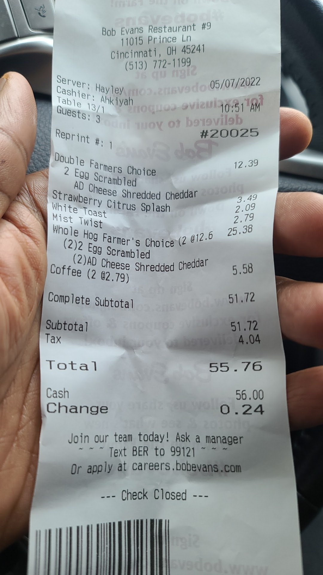 Ā Ā Ā Read moreI mean it's a pretty standard Bob Evans. But sadly the last 2 times we've been have been beyond subpar. The service has been slower (and some of that is in the kitchen not the waitress). But the last time we went in and both myself and my husband ordered a type of steak. Mine was supposed to be medium and it was definitely well done. My husband's came out with what looked like the side of gristle they cut off the actual steak.