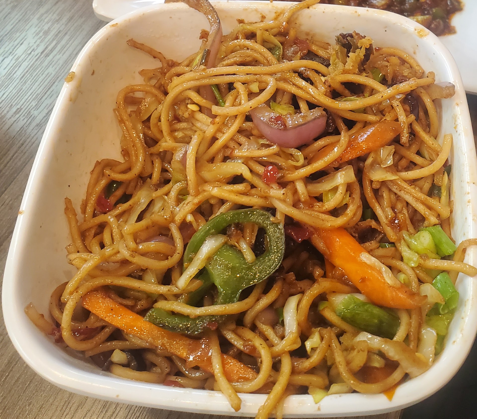 My son got Dry Manchurian ($10), which neither of us liked because it was very salty. It was balls of dough in a Chinese sauce with some veggies. He didn't finish it. He also got veg. Hakka Noodles ($10), which he liked although he didn't care for the veggies not being cooked until soft. I told him that's normal for Chinese food like that. He also got fresh lime soda ($4), which was lightly sweet and nice.