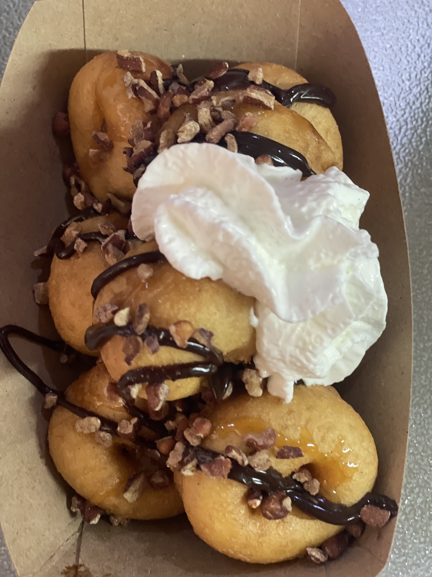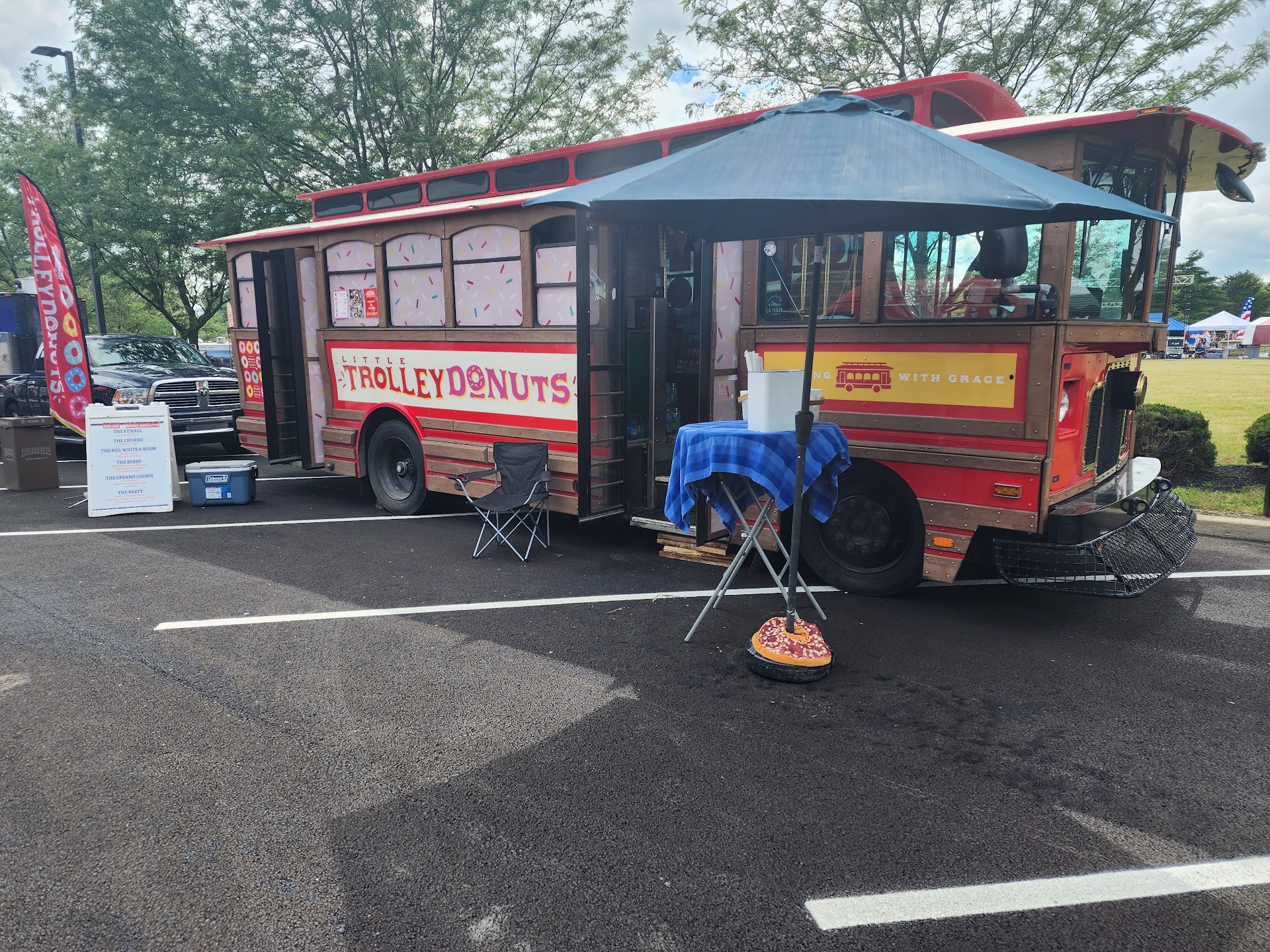 We found a Little Trolley Donuts on accident on July 4th, 2021 or 22. We went to a festival solely because we wanted a funnel cake. We were disappointed when we got there and the only dessert option was a food truck, Little Trolley Donuts. We got something simple- I think cinnamon sugar, maybe caramel sauce. As we are eating it we are going on and on about how good it is. Then, at the same time, we both said “crème brûlée cheesecake!” It was that good! We’ve never said that about any other food!