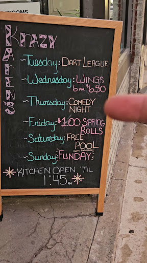 My boyfriend, and I live and reside in Florida now. He attends the University of Florida. However I am from the Pittsburgh area originally, and we stopped by to visit my mother for Thanksgiving, and for her birthday in the Fox Chapel Area. We had a long, and fantastic day visiting Falling Water which is a national landmark, and is located close to Greensburg PA. We were getting tired but after we ate dinner I decided to see if my old friend DJ was in the bar because I used to like going out there with him when I still lived in Pittsburgh. Sure enough there he was, and we reconnected immediately. My boyfriend ended up meeting him, and we had a fantastic time playing pool. There are many other activities to do at Krazy Karen's such as Jenga as well which makes it unique from other bars. Now this is the best part. I never knew the owner Karen, but she happened to be there that night with her wonderful wife Linda. They were the sweetest people; they came right up and introduced themselves to us. They truly made us feel so special, and welcomed. The positivity and radiant energy that came from them both is a very rare quality to have in people nowadays. We even exchanged phone numbers, and I promised I would write this review in the morning. Please if you want to find a more unique, and different bar experience than what you are used to, Krazy...