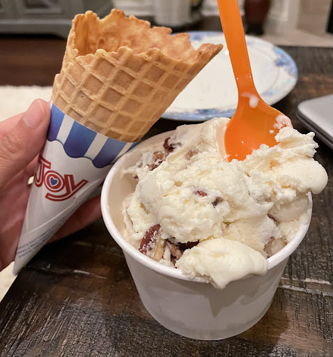 Now to the review: their butter pecan ice cream is the best I have ever had. I simply canāt eat ice cream from any other place now. Everything else just isnāt worth the calories. I typically get a butter pecan waffle cone, but today I finally realized if I get my cone on the side, I can drive home and eat! Most of the times, thereās enough pecans. Thereās only been maybe 3 times in which there were hardly pecans. So, since Iām a frequent customer, I just told them that and the employees made sure there were enough pecans. In fact, I know they started to recognize I was the butter pecan person, which was not a good thing. š¤¦āāļø. Thatās how many times Iāve had this delicious icecream. I really canāt vouch for the other flavors because I havenāt tried them.