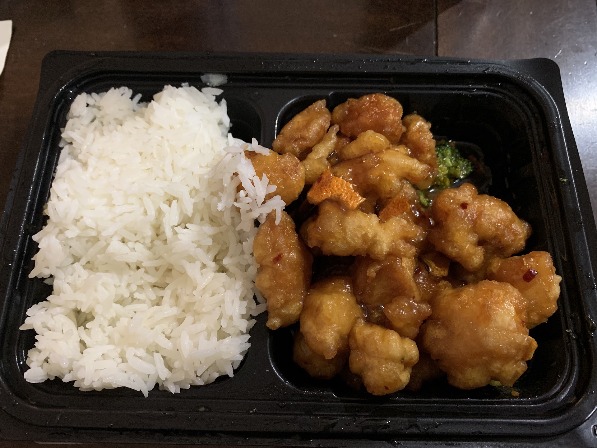 Ordered orange chicken and black pepper chicken with white rice. Portions are smaller, probably close to Panda Express size. Chinese food is known for its bigger portions, so this is important as bad as it sounds!