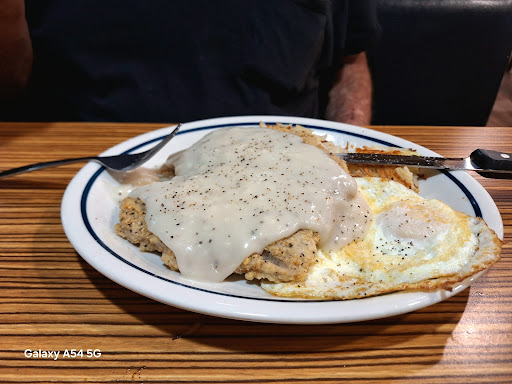 Read moreI had the chicken and waffles. When the waitress brought out my waffles, she asked me if they were "to done", which to most would have been overcooked, but I like crispy waffles so I was good with them. Then 7 minutes later she brought out my chicken with another waffle, since she felt the other waffle was "to done". Right away I could tell that the chicken was way overcooked as it was dark brown. When I bit into a piece of it, it had been so overcooked that the meat inside was dry and hard. I asked the waitress to come to our table and when she got there I showed her the chicken. She said she was sorry and asked if there was anything else she could get me. I wanted the chicken and waffles but had already eaten most of my waffles waiting for the chicken so I asked if she could just take the chicken off the ticket. She said no its a meal then went into this long explanation about how the cooks aren't able to adjust the cook time because the chicken tenders are bigger, blah blah blah... As she's explaining this to my mom and I she inadvertently leans into our table, knocking a piece of the other waffle that was served with the chicken, off of the plate. I must say she had some pretty quick reflexes though because she managed to catch the waffle with her bare hand and then proceeded to set it back on the plate. She turns to leave, hesitates, turns back around, grabs the plate and without another word to us she walks towards the kitchen hollering out to the cook to make me some more chicken. By this point I am done with my waffles, my mom has long since finished her pancakes and we are ready to go however our waitress is no where to be found. She finally returns with our ticket and a new plate of chicken. Needless to say mom and I will not be meeting at...
