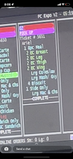 Read moreWe ordered a 16 pc all legs and thighs meal, with 2 -1/2 gallon dr.pepper and a 6 piece leg and thigh meal. We were told 13-15 minute wait. Almost 45 minutes later I went into the store ( we ordered in drive through) and was told my order was just being put together. Cue another 15 minute wait. Finally get the order... But it's not legs and thighs!! The employee grabs food out of the bucket no gloves on and informs me that piece is a breast... Eric the manager came out and told me that's what happens when you order in the app! Ummm we ordered in the drive through and are almost an hour in for 22 pieces of chicken!!! They then try again with little effort of course. One bucket of the cbicken is extra extra dark and inedible pretty sure it's burnt. The mac and cheese is so dry and been sitting there so long its crumbly and rubber, and the lovely just add water mashed potatoes didn't even get enough water as they are still full of dry potatoe mix!! My two half gallons of soda first came as 2 large sodas.... This place is a circus and the clowns have no idea theyre even working at KFC! Eric was kind enough to tell me I could call his regional or district manager on Monday, and that I could contact them by calling Human Resources, which he doesn't have a number for. I absolutely DO NOT RECOMMEND this place AT ALL!!! They will take your money, have you wait an hoir and still not be able to get your order correct or prepped correctly!!! And Eric with his broken nose just doesn't care! There was 1 woman with 2 kids in the lobby, and one other vehicle in the drive through the whole hour they were busy not making our food! And Eric wanted me to understand they are super busy as he tells me this! There is one man waiting to order, and us still waiting for food..... I guess anything more than one cistomer in drive through or in lobby is too much for this location to handle!! DO BETTER!...