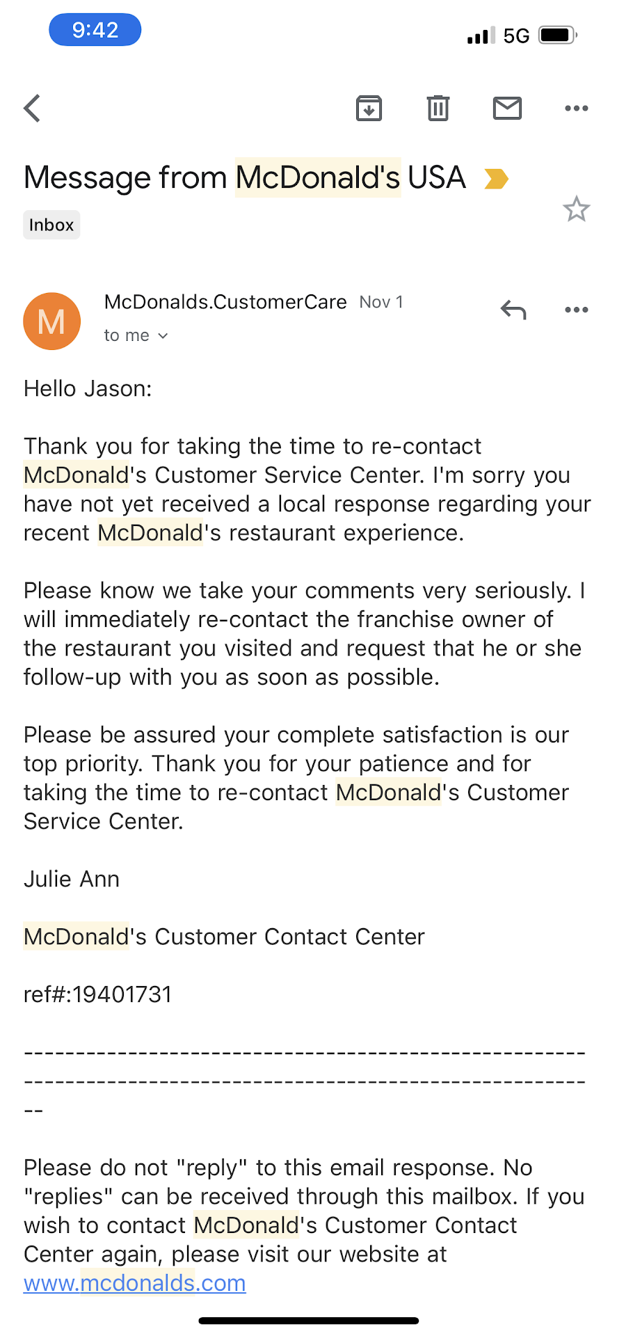 She said i can give you a refund if you want. So i said "SO BE IT! AS I WILL KEEP CORPORATE AND YOUR NAME IN THE LOOP OF YOUR SLOPPY ASS CUSTOMER SERVICE."