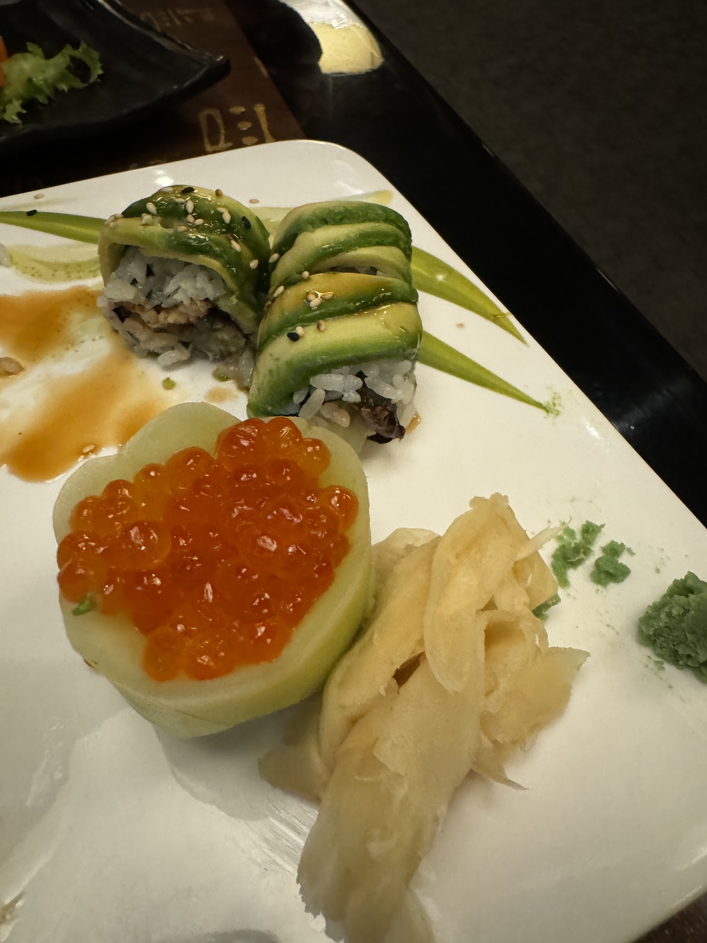 Besides lots of sashimi, we also ordered edamame, crab ragoon, green island roll, Oishi roll, and the dragon roll.