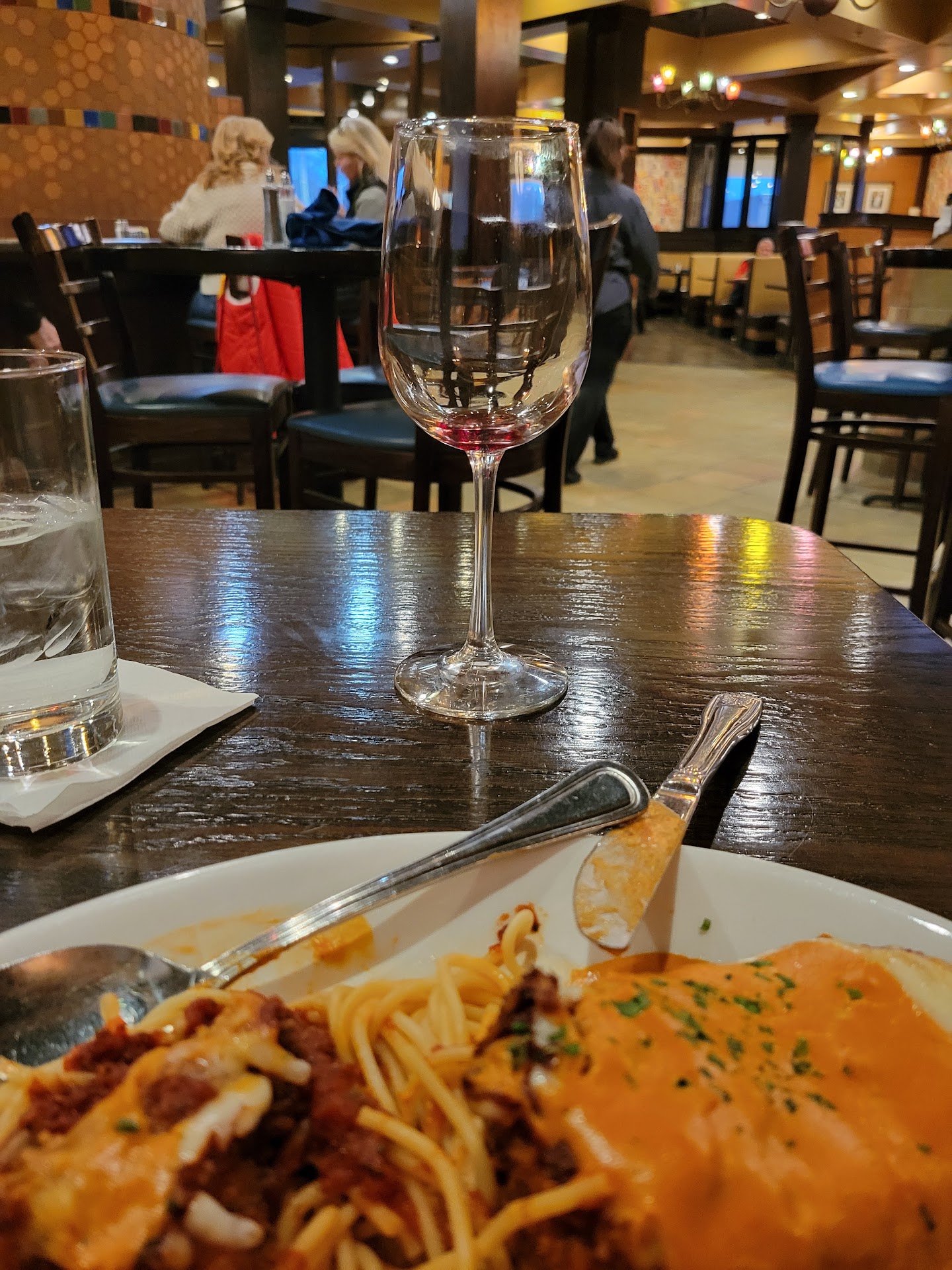 Best EVER garlic bread!!!! Literally made my day! Ha! That pesto garlic dipping sauce was divine with that perfectly cooked bread. I got a yummy delicious HUGE plate of bowtie chicken, enough for lunch tomorrow as well. One son got Sicilian pizza, good (not really spicy as listed) but also plenty for leftovers. Other son got lasagna, also good and husband got a beef pasta.... deburgo, very spicy, perfect for his taste. Nice that the calamari came with both warm marinara and cool lemon aioli, as my family was split on preference, but stealing garlic bread almost resulted in a fork in the hand! Only disappointment was that sweet tea came as tea with sugar packets, which any tea lover knows doesn't dissolve well when tea is cold and... my husband was asked if he wanted parmesan cheese and pepper on his meal but when server came back she said that the parmesan "hadn't been taken out yet," asking if just black pepper was okay? What? An odd comment...as if he wasn't worthy of getting the cheese out after he was asked. Otherwise, we were overall pleased with our experience.