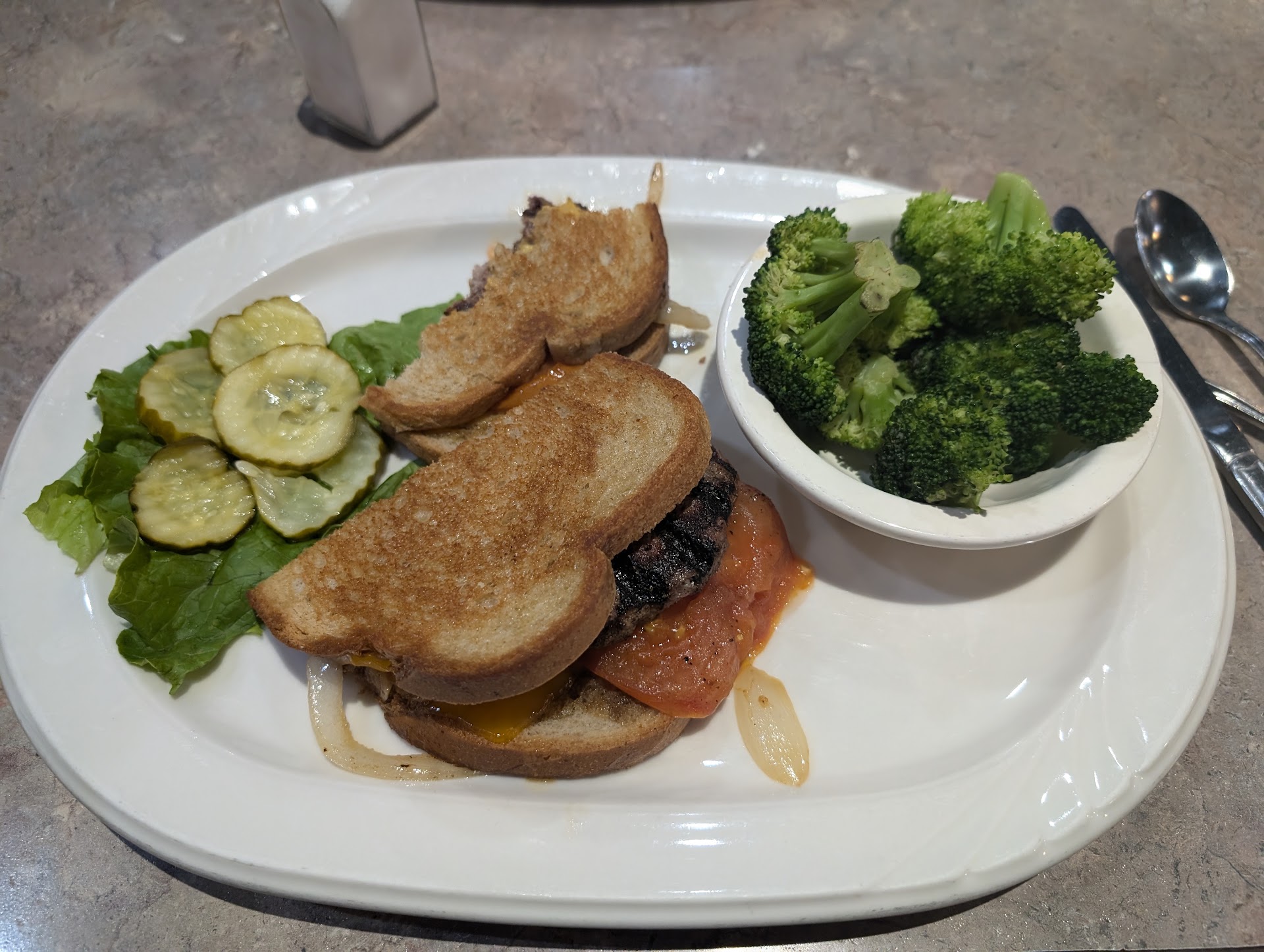 It took about 15 minutes for our waitress to even acknowledge my wife & I were in her station! She took our order the wife ordered an omelet with rye toast coffee & ice water. I ordered a stack of pancakes & 2 eggs basted but she didn't understand what basted eggs meant so said scrambled & those came back fried hard. My wife was served white toast instead of rye, our ice water never came & had to be requested again halfway through our breakfast.