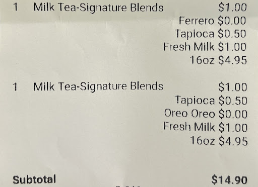 Went to this place because of good reviews but left very disappointed due to their UNETHICAL BUSINESS PRACTICES. I ordered medium bubble tea the cost of which was ~$5.95, but they ended up charging me way more: +$1 for “fresh milk,” +$0.25 for something else, and +$1 for cream/ice cream. The worst part is, I wasn’t told that the cream/ice cream was extra. The staff just asked, “Do you want cream or ice cream?” which makes it sound like it’s included. Bottom line, the final price came out to $9.95 with tax — nearly double what I expected.