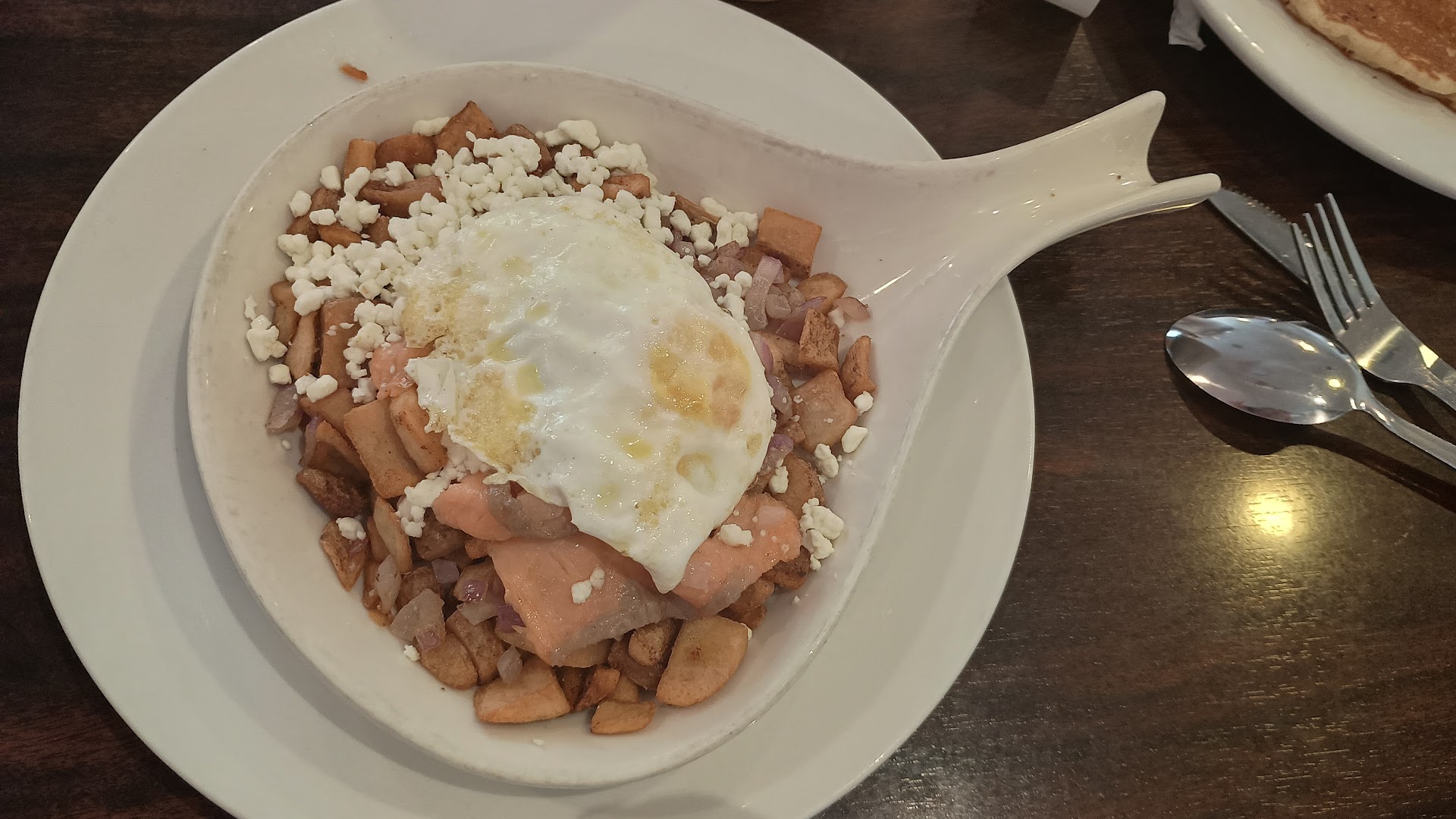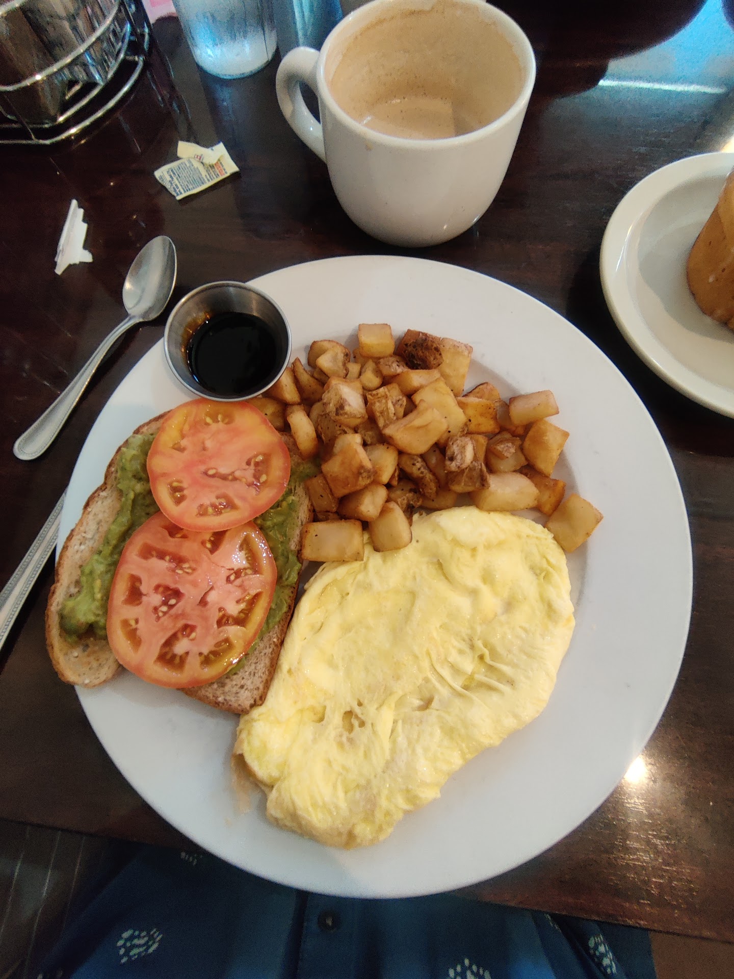 Read moreCame for breakfast on a Sunday. The owners and staff seem friendly and engaged. The place was busy with line out the door. The wait for food was pretty long but we were not in a rush and the place was busy. You could see a lot of tables without food though so kitchen was struggling likely. I ordered a chicken fried steak breakfast with eggs, toast, potatoes, and gravy. The food was OK. Not bad but not memorable IMO. The fried steak was a bit too hard. I tried both thr regular and chorizo gravy.. they were also both forgettable for my pallet. The white gravy is heavy on the flower taste. They were both too plain to be great/memorable. My wife had avocado toast, eggs, and a cinnamon roll. She did not enjoy the avocado and thought it was "funky". I do like that they have capuchinos and other lattes, expressos, etc. Overall I could recommend to someone in the area for a breakfast/ brunch spot. It does not make any top lists though based on the meal we had today. I would reccomend they try to make some new signature dishes that bump up thr flavor and rusticness vs just repurposing an old menu from previous owners. Make it your own guys! (The menu also lists the chicken fried steak in 2 different places at 2...