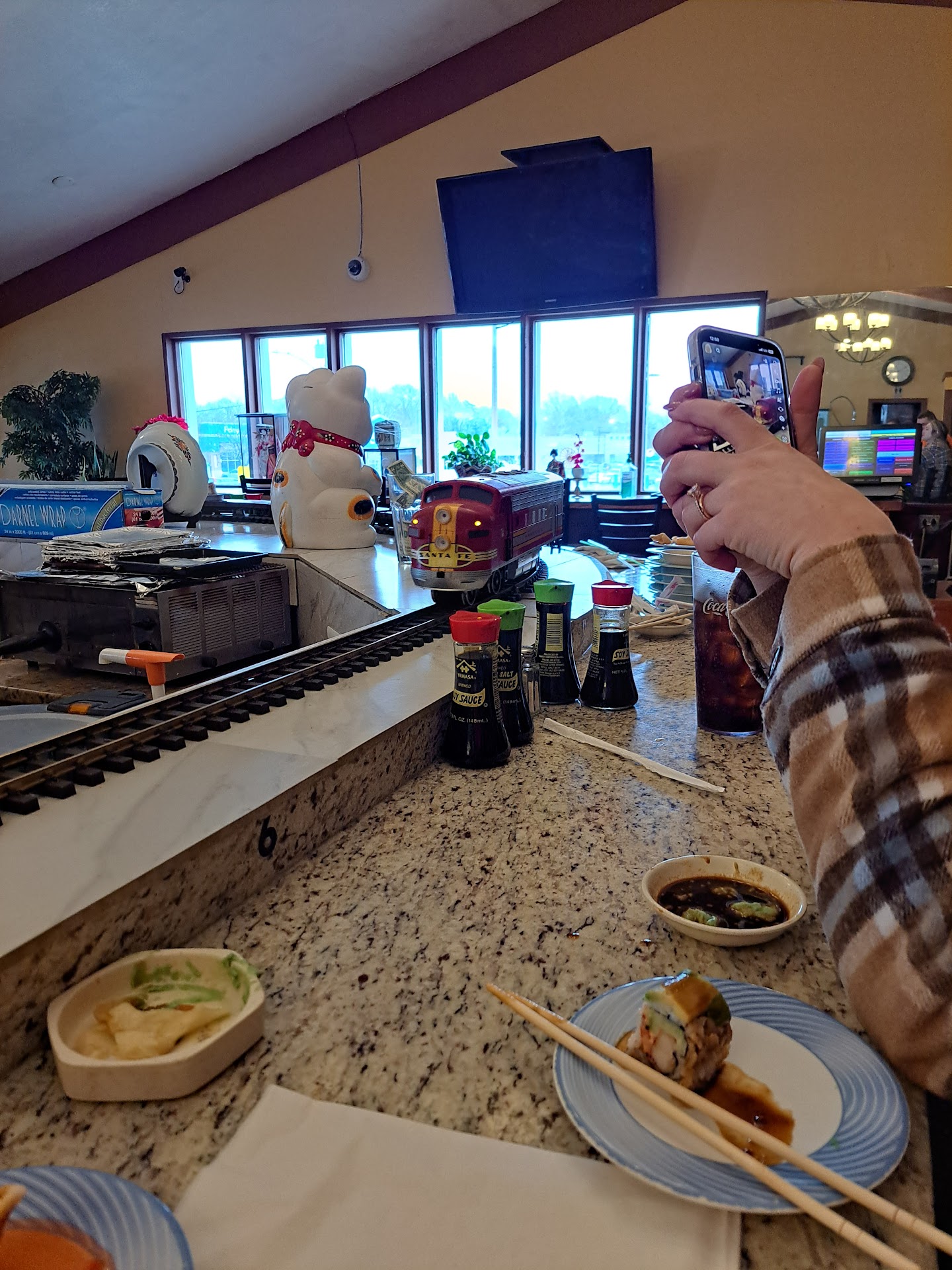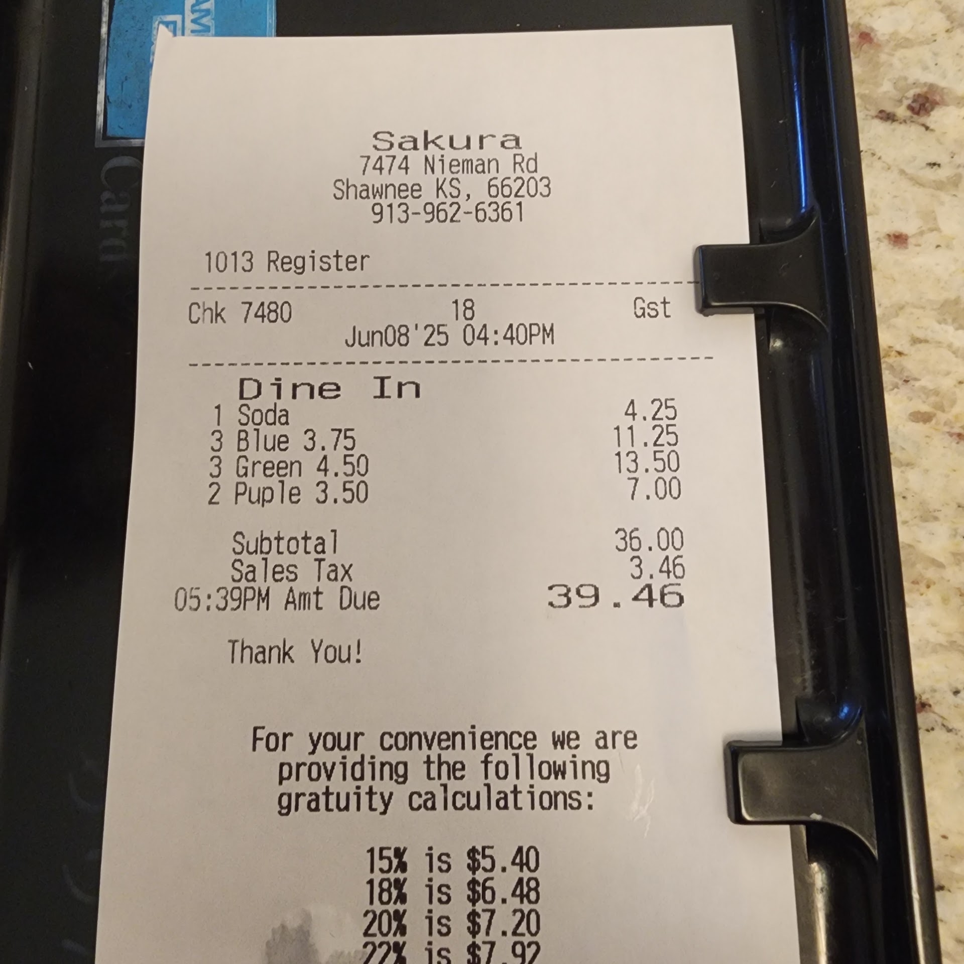 Read moreIf I could I would give them ZERO stars. I had heard good things about Sakura, and decided to come here for lunch with my cousins. We were greeted at the door and asked if we'd like to sit at the train bar, or a regular table. Since we've never been there before we thought we'd try the train. Our waitress comes and takes our drink orders, and leaves. Doesn't bother asking us if we've been here before or letting us know what dishes cost what. She came back after a while with our drinks and I had to call out to her before she left to ask about the sushi train. Each dish color apparently cost a certain amount and they add up the amount of dishes and charge you afterwards. Now to the sushi train we go! But wait.... We take a look at the sushi train and there are only some things that we were interested in trying or eating. We waited a while for the chefs to put up some more sushi, but they never did. Our server never came back to us to ask us how things were going, or tried telling the chefs they needed to put more food on the train. I asked the hostess if there was some kind of sushi menu. She handed me 3 different "menus" or sheets of worn down laminated paper. The pricing and how they structured their menu was very confusing. We decided to wait and see if there would be more sushi put on the train, since we couldn't understand the menu, and the hostess obviously could not explain to us the menu. We ended up leaving only eating 2 dishes eat of sushi (by the way theres only 2-3 pieces on there). We paid and left, and went to Lenexa to Edokko instead, where I KNOW I get great...