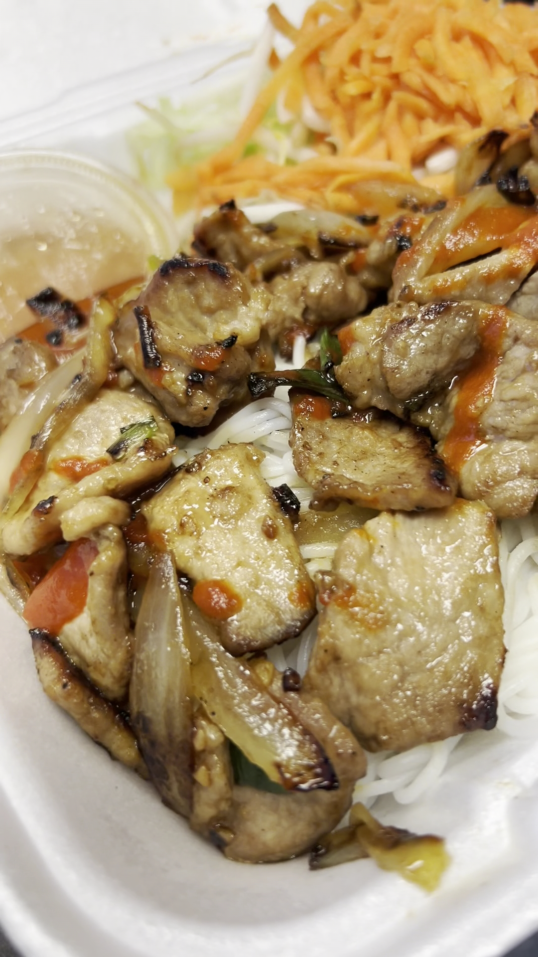 One of our favorite places to get take-out, although they have dine-in, too. Our faves are the vermicelli with chicken, shrimp or beef (vermicelli noodles, tender pieces of meat with grilled onions, lettuce, carrot slivers, chopped peanuts and fish sauce). Pour on the fish sauce, mix everything together and enjoy - SO good! The lemongrass chicken, shrimp or beef is very similar but comes with rice. Hubby usually gets the shrimp fried rice which is a huge portion! And prices are cheap for what you get! Only con is the way their drive-thru operates. They have a big menu board outside that people can order from but then they move forward to the drive-thru window and wait for 10 min while food is being prepared. Wish they’d just remove the board and use the window only for those who called ahead and just want to do a quick pick-up. Otherwise I get stuck behind them, waiting for their food to get prepared while mine sits inside getting cold. Photos are: shrimp fried rice, beef lemongrass, shrimp vermicelli...