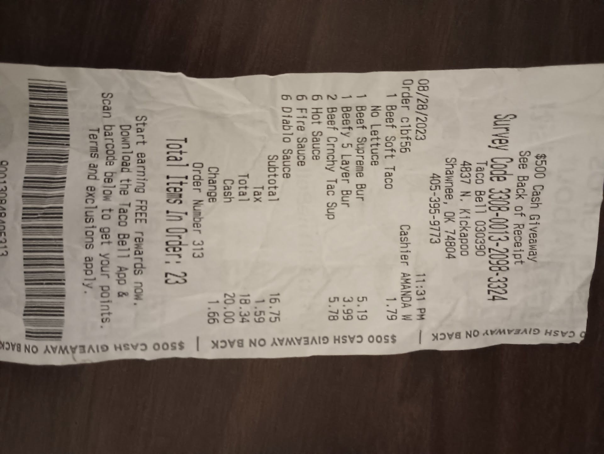 Read moreStopped by with my daughter for a quick meal. Usually, we go to the Taco Bell on Harrison, but went to the Kickapoo location instead. The food was prepared fairly quick. Unfortunately, we both threw half of our meal away. My beefy 5-layer burrito (my favorite burrito on the menu) was flavors except for the heat of the cheese sauce. It really surprised me that they managed to make it so bland. Not what I've normally experienced. My daughter ordered a classic Mexican Pizza. She loves those normally, but she ended up only peeling off the top layer of tortilla and throwing out the rest. She to found the beans to be pasty and bland. She was disappointed also that there was no taco meat in the burrito. The meal also came with the unexpected "entertainment" of the manager verbally dressing down an employee so loud that we could hear it. Other employees keep giving us very uncomfortable looks of embarrassment at the manager's behavior. I have worked in both fast food and in restaurants over the years. That type of humiliating behavior by a manager towards an employee was never allowed. I actually felt bad for the kid. Literally all he did was clock in and she loudly ripped him a new one. She made him clock back out and wanted him to wait an hour before clocking back in. If she didn't want him clocking in at his scheduled time, them she should have notified him before he came to work, not yet at him...
