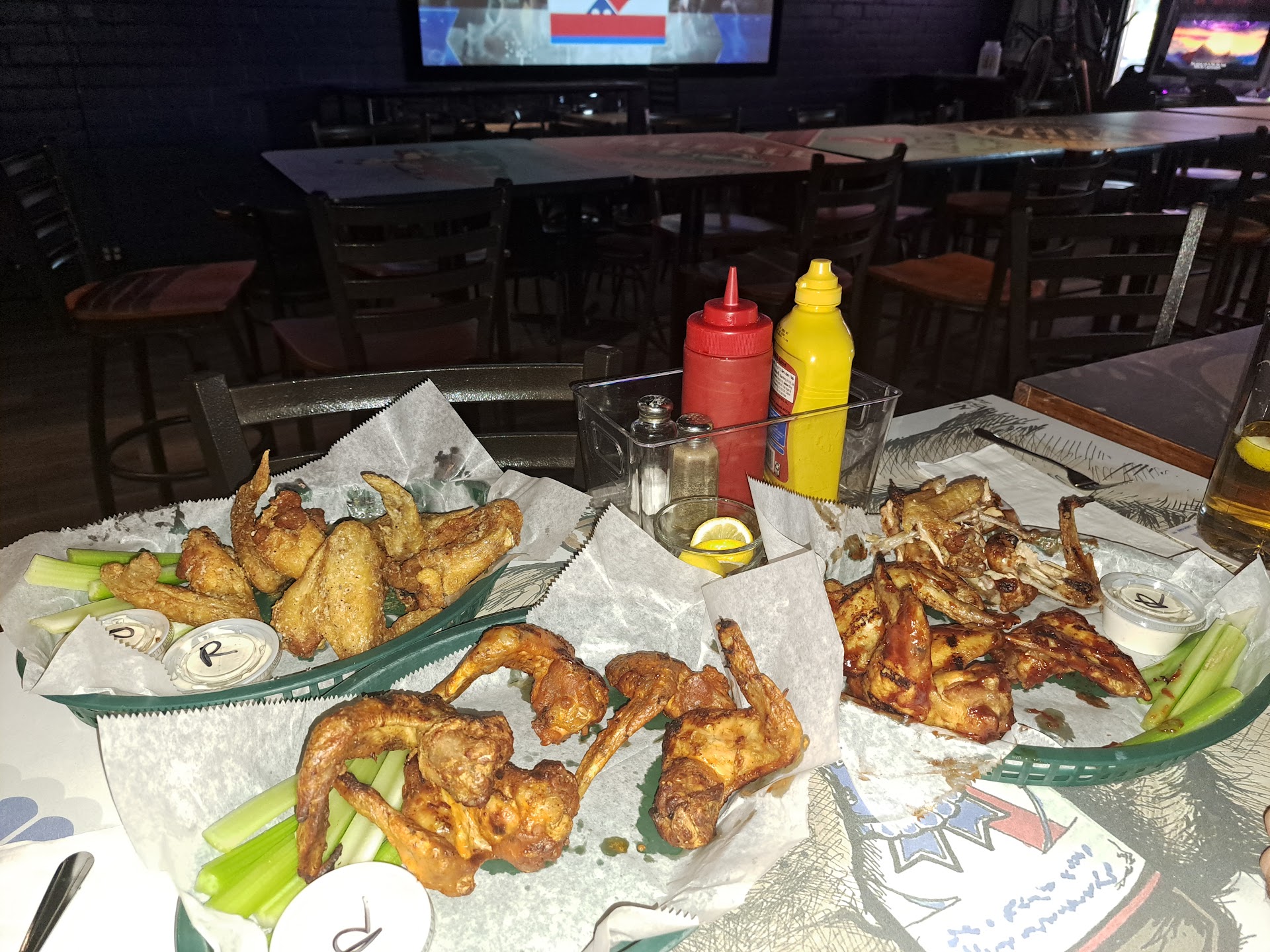 Once we ordered, she brought his beer out, which was delicious! And the wings came out shortly after that. I had to temporarily stop our feasting for this ONE photo because I knew I had to come back and write a review about how amazing this place is.