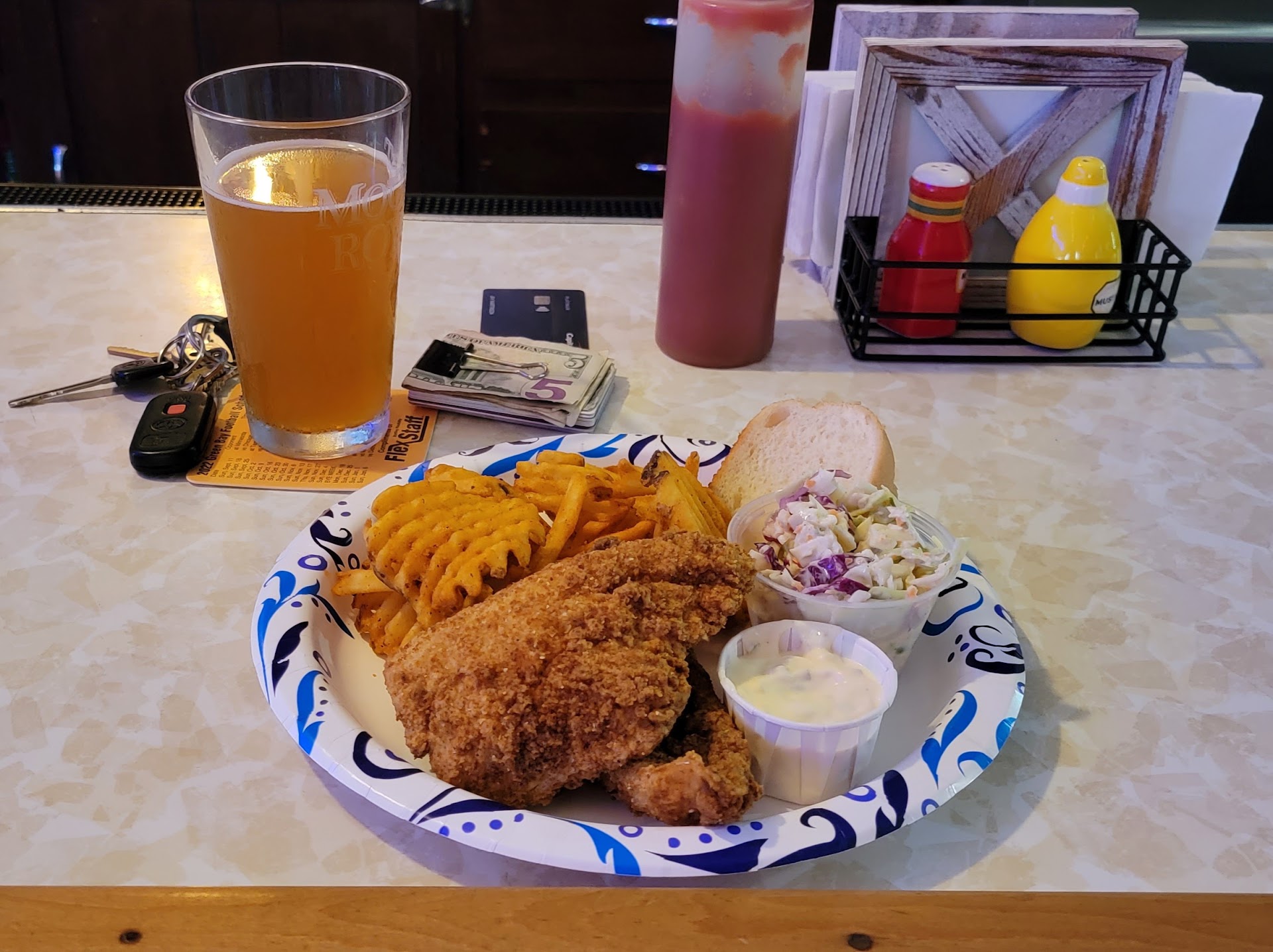 I have lived here for about a year and have been trying the various fish fry's around town. This one is now my favorite. I got the wallaye and it was perfectly breaded and seasoned. Also, the coleslaw was DELICIOUS and I'm VERY picky about coleslaw. The option of waffle fries is a really nice change from the standard french frys.