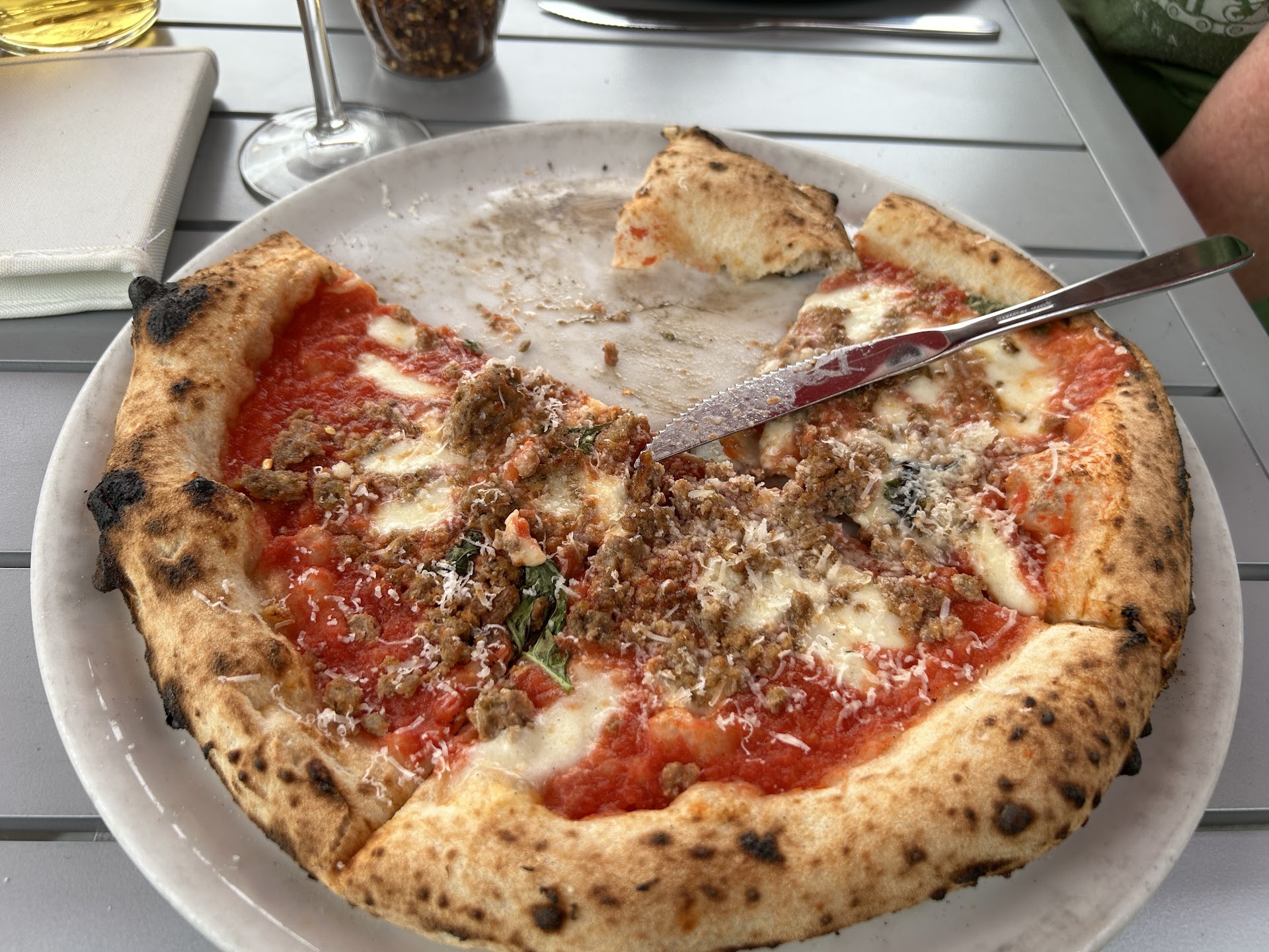Read moreHarry’s is situated right on the water of the Sheboygan river, so sitting outside on their patio is a must! But if you opt for inside, it’s a cozy Italian restaurant feel inside. The wait staff was very accommodating. We had to wait about 20 minutes for a table outside, so we sat at the bar and had a drink while we waited. They have a great selection of beers on tap at the bar as well as wines and harder spirits. They offer pizza, calzones, pasta, and salads. Unfortunately they have no gluten-free options listed on their menu. I asked the bar tender if they had any, and was told “we used to, but we’re out right now.” Or something to that effect. This was disappointing for my wife who is gluten intolerant, so she could only choose from the salads. The salads all come served on what is basically a pizza crust on the bottom. So she of course ate only the salad itself. Once seated the waitress came quickly to take orders. All the pizzas are 12 inch, personal size. I got a sausage pizza. There was a lot of dough, but sadly not a lot of toppings. What was there, was very tasty. The sausage was very finely ground and the sauce was tangy and good. The center of the pizza, however, was soft and limp instead of being crispy, which indicated that it perhaps should have been cooked a little bit longer. My daughter in law got chicken and gnocchi pasta, which had a rich, delicious cream sauce with a wonderful garlic and onion flavor and included sun dried tomatoes. This was by far the best meal at our table. All in all, the food was slightly disappointing - especially that there were no...