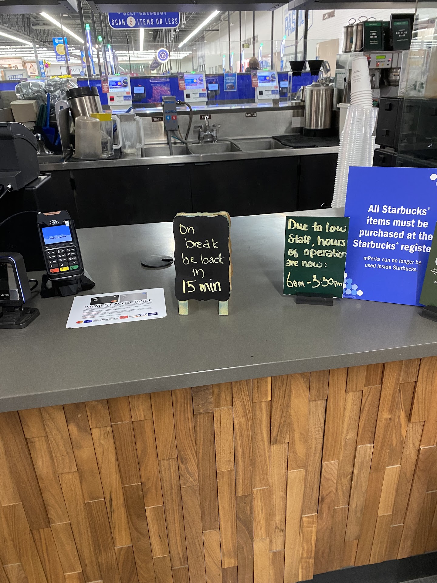 Ā Ā Ā Read moreJust made a stop today, me and my coworker had a few minutes before going back to work. The lady in shift kept cleaning and ignored us for a good chunk of time then said she will be right with us. She just kept doing her thing and never took an order. We decided to stop bothering her so we went to Starbucks on 14th st. Even though those 10 min would have been great to enjoy on our break. Not coming back to this Starbucks. The other Starbucks have way better service than an upset woman that probably has lots to do in the shop but yeah customers want to order. We left with...