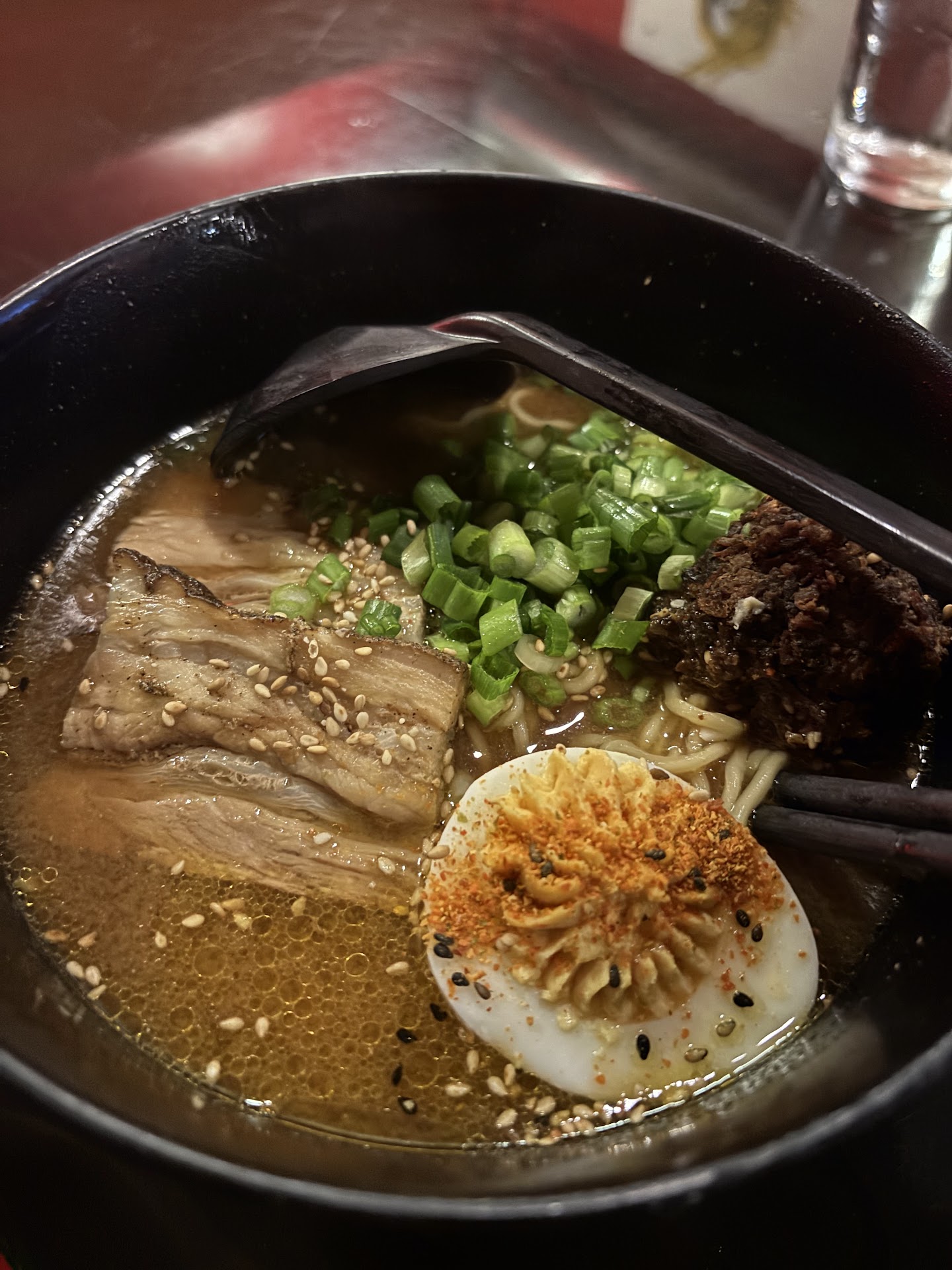 The food there was alright. I would say itâs a 6/10. We mustâve gotten the bottom of the broth because it was quite salty and like I mentioned before, the noodles were soggy. Nonetheless, the actual flavor of the broth was pretty good (aside from the saltiness. It was better once I added some water) and the buns were pretty good.