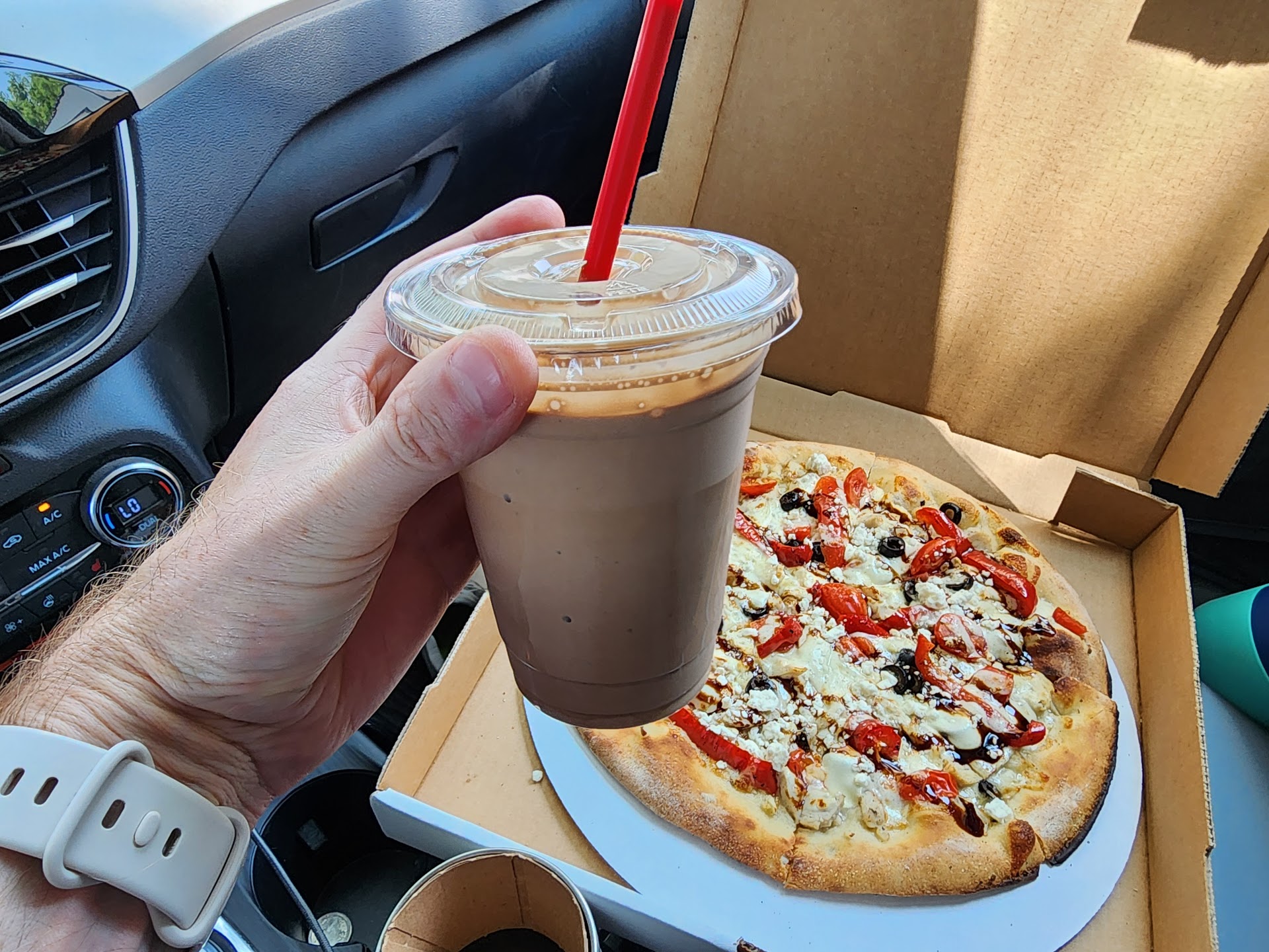 I travel for work and love finding these types of places. I was looking for a good coffee and found much MUCH more. The first day, I got an iced caramel macchiato, very good. The second day, I got a Mediterranean pizza and espresso shake. I have to say, this is probably the best pizza I've ever had. The flavors were amazing, and the cherry tomatoes used were just sooo good. I might have to make this place a regular road trip destination when I'm craving pizza. I went back a third day and got a PiƱa Colada flavored Lotus energy drink, and that was also š„ I'll be getting that again before I'm done working here in town.