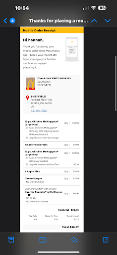 Read moreCame to pick up my mobile order. Got to the second window and they were out of apple pies. They offered me “something else”. I asked them what are my options and the kid told me ice cream and said ummmmm, he just kinda played stupid. So I said “can I just get a refund” he said technically but my manager is in the bathroom. The way he said it was like I was out of luck. At this point I’m like screw it. I used my points on a free quarter pounder I’ll just take the loss. So he hands me my food and shuts the window. I’m still waiting for drinks and when he comes back to the window asking what else I was waiting for I tell him. He looks around and makes the Coke Zero and hands me a tea. Now I can’t confirm this Tea was just a random tea sitting on the counter. But I saw it there when I drove up and the fact that he still had to make the Coke and looked around confused when I needed my drinks made is suspicious. That and the fact that the tea had no ice and was not cold. Maybe they just brewed some fresh tea but I wasn’t gonna risk it since I didn’t have to wait behind anyone and I saw the tea when I pulled up. I took the tea but I threw it away when I got home.