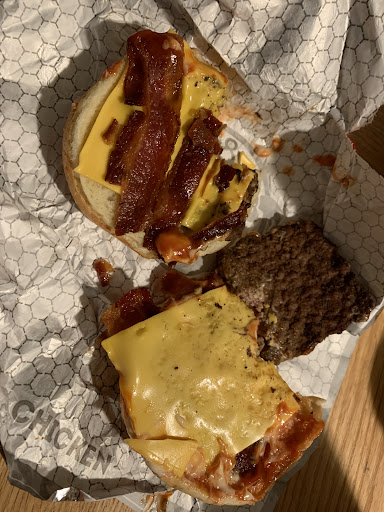 Get home and there was a large curly hair right in the middle of Darrenâs Burger â it looked deliberate. We literally just threw it away. He refuses to eat.
