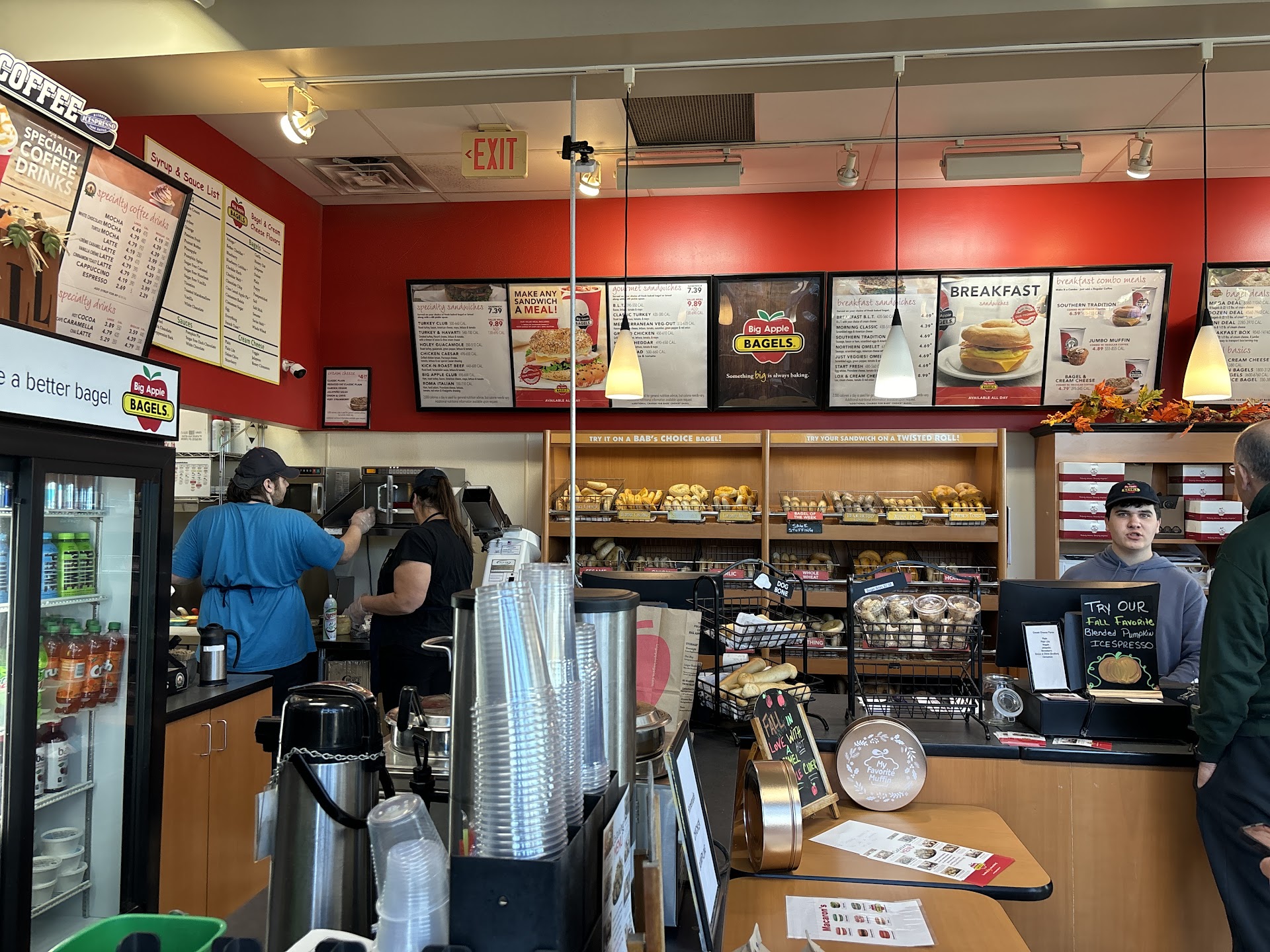 Updated again after visiting a few times. The same woman is there and still no hairnet. Hair hanging down by her face and all. When asking for my order, felt like I was bothering her with questions about items or if they can cut the bagel before wrapping.. very unenthusiastic. Seems like customers have agreed too like we are burdens for...