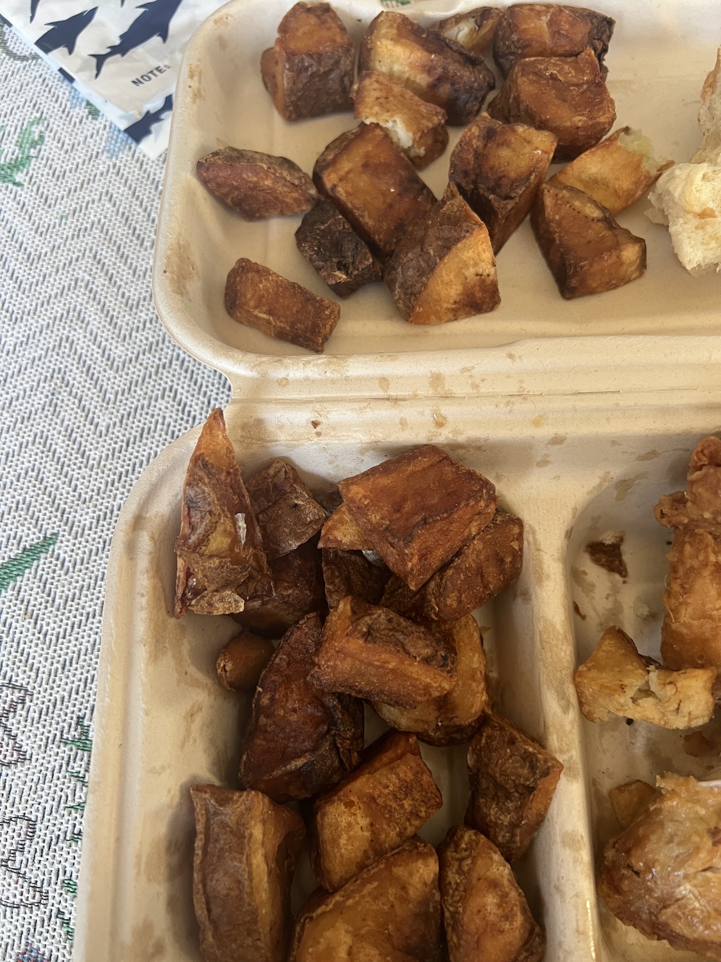 After deciding I could not stomach another piece of this oil-impregnated poultry, I moved onto the potatoes.