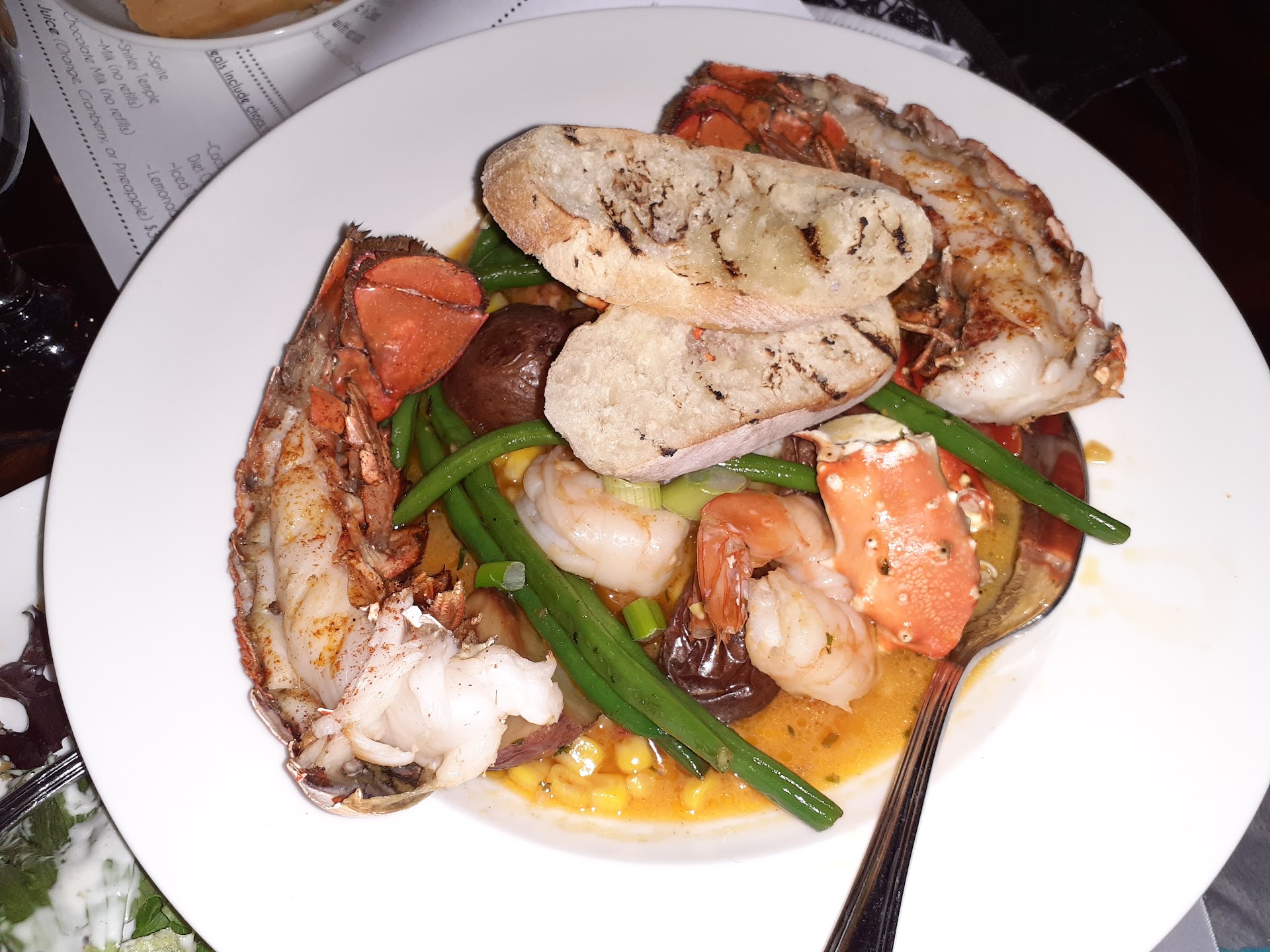 Read moreI'll start by saying that one would think that during a pandemic, when restaurants and service staff are struggling to stay alive, a restaurant would try its hardest to be awesome. Well.....two words: don't bother! Okay, a third word: ripoff! First, we called and made reservations and asked for a great table, since this was a romantic celebration. We were told 'of course'. What we got instead, was stuffed in the back of the restaurant, against a wall, with a partition of booths blocking any view and the glaring sun bearing down thru the window into my husband's eyes almost the entire dinner. NOT romantic. In fact, it may have been the worst place to be seated in the entire restaurant! Secondly, the server was a little goofy about almost everything and when we mentioned this, we got a blank stare and she moved right on to the if we wanted water. The upcharge on the water that was not tap was $4!!! And it was downhill from there......the silverware and wine glasses were dirty and spotty, the wine choices were silly - they were 'out' of several selections and many offered only by the bottle, and the menu - for a FISH restaurant - was limited and weird (and not eclectic or artsy weird, just weird) and offered very few and odd 'fish' entrée choices. I don't know what menu some of these reviewers got, ours was super limited and weird. (I wanted salmon, but their only salmon options were all Asian flared, for example.) Anyway, our food.......the lobster bisque was awful; it was glummy and bland and tasted like baking flour. The side salad (that I was upcharged another $4 for, in lieu of their house coleslaw which was not very good) was soaked in dressing. The stuff shrimp was sub-par; the shrimp was 'ok' but chewy and the stuffing was like undercooked Stove Top. The fried perch was a huge disappointment too - the fish and coating tasted almost exactly like movie theater buttered popcorn, and that's not great on perch, and the sauce was so salty it overpowered the fish. The sides were something you'd get at a local diner - a mass produced (I'm sure) rice pilaf and some green beans. That was LITERALLY your entrée side choice. VERY disappointing meal and experience, considering our bill was well over $100 (and we each only had ONE glass of wine)!!! Too bad. This place was kind of cute and probably had potential, but they blew it. I don't get all the positive reviews. The only nice thing I can say about the food is that the bread is good - it comes hot in a bag and basket, and it's buttery and garlicky. With so many other great restaurants in a 10 mile radius in any direction, why bother with this place? We...