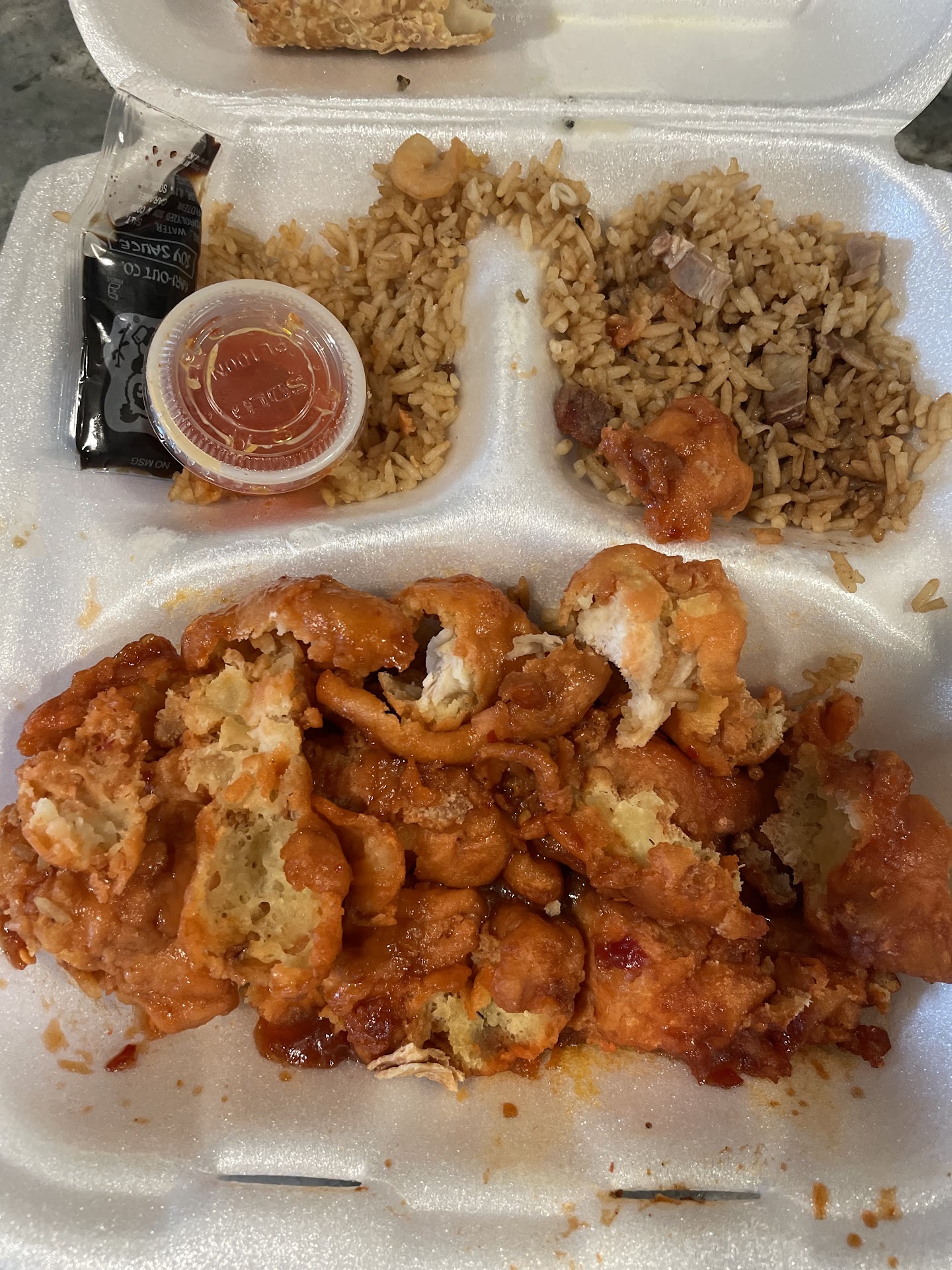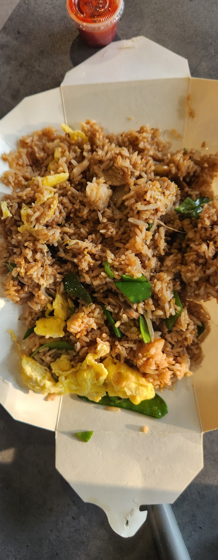 There was so much grease inside the containers even the plastic cup containing the dipping sauce for the eggrolls was too greasy to handle.