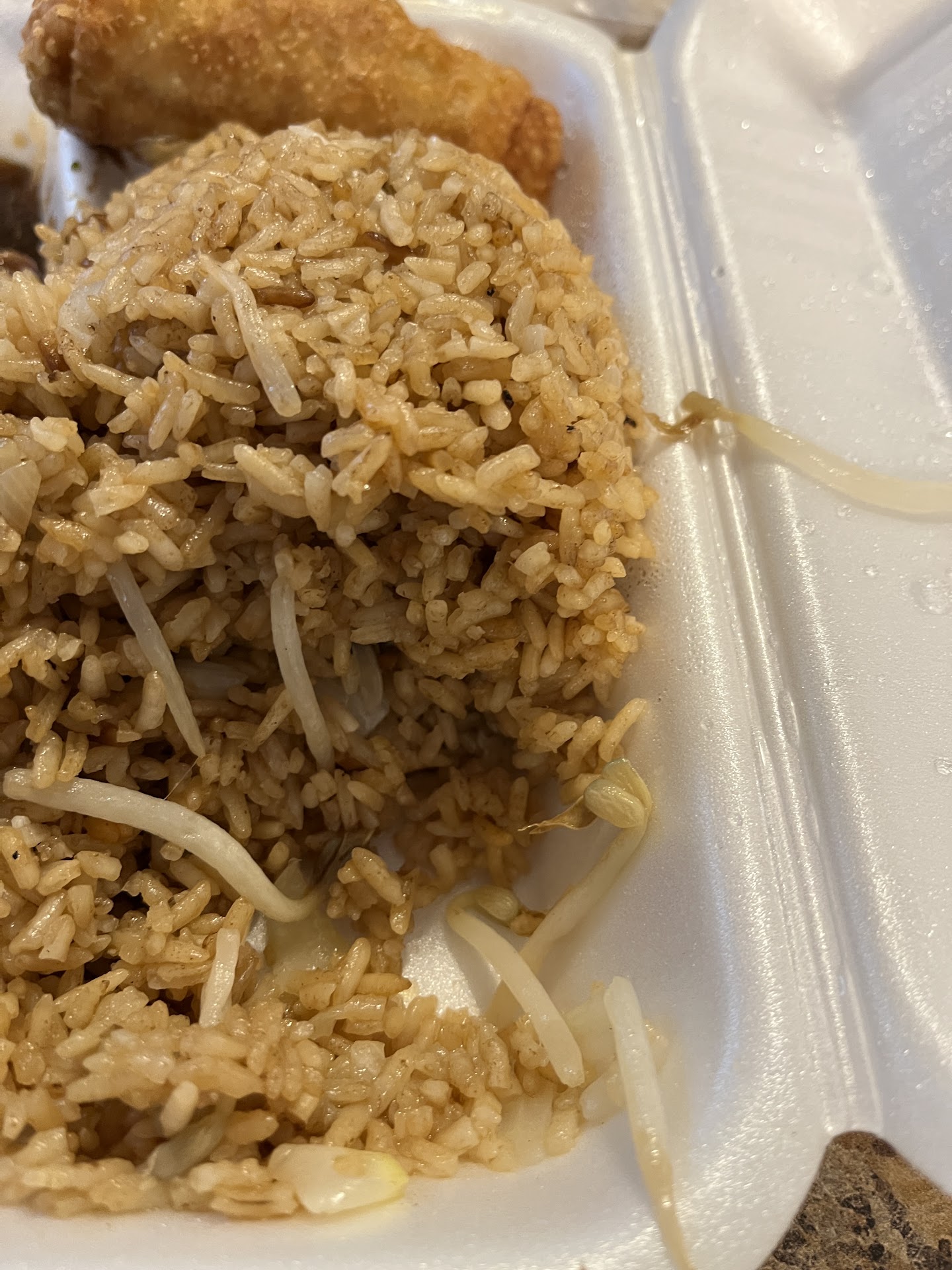 The shrimp egg foo young patties themselves were half-decent but nothing special, the problem there was the gravy was gelatinous, not really even a gravy, and next to tasteless. Also, the fried rice was mealy, underdone, and flavorless. That's right, a Chinese place that can't even cook fried rice!!! LOL