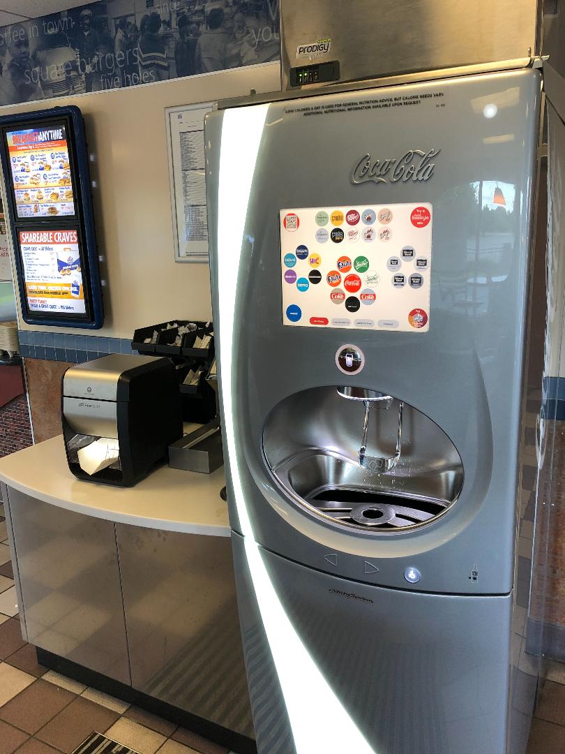 Their Coke machine needs to be updated. The screen shows many options that are not available such as any of the Lemonade flavors. They were grayed out. Even when I selected Coca-Cola, I could not choose any other added flavors to it like cherry or vanilla. Those options were on the screen, but like the lemonades, they were also grayed out. They should update the machine to reflect what drinks they...