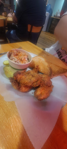 Read moreI have to say the vibes are weird it's almost like walking into an airport bar. There are no real waiters, but they'll bring the food out to you. I don't know how to describe it besides slightly off. They have an upstairs area, which is cool, but the decor makes it almost feel like there should be a billiards table in the corner. I order the med rare burger with fries, and my friend got the tenders with the elite salad. Let me start off by saying the tenders are amazing out of all the reviews I've read that's the usual consensus I get is that their tenders are the draw but everything else was lacking. The burger was under cooked that it was a dark pink, cold and it was hard to eat because the tendons were still intact. The elote tasted like they smoked it and forgot the smoked it so they smoked it again. My buddy said it tasted like an ash tray. The fried were alright but over all the food was unimpressive. The beers were another high light they are good and if they are to believed brewed in house which is amazing. Between the weird vibes I got from the decor and the bad food I got I xant say I enjoyed myself but I really did want to...