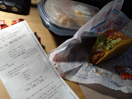 Read moreWhat a terrible place. My wife loves Taco Bell lunch/dinner and I like the breakfast. The past few times weâve came, itâs been nothing but troubles. I guess the workers here decide the hours of operation and other things. The sign on the door says they open at 8 am however last time I tried to pick up breakfast I pulled through at 8:45 and nobody would come over the speaker. Iâve had issues with ordering nacho fries when theyâre clearly advertised on the menu and being told âwe donât sell those hereâ Constantly charged the extra price for adding sour cream to things, as well as my wife adding lettuce, sour cream and tomatoes to her tacos just to realize when we get home, they always forget or just donât care to. I pull in today (10/3) for breakfast after ordering on the app, to be told in a very non professional way âsorry we got a huge doordash order to do and got one person on the line. Itâs gonna be a while. Why donât you look at the menuâ So I sat for 20ish minutes then she came back on the speaker at 10:29, I gave her my name for my mobile order and she goes âsorry but breakfast is overâ as Iâm looking at a sign that says âBreakfast served till 11 amâ When I asked how is it over when Iâm looking at a sign that says otherwise Iâm met with âwell itâs over. It doesnât go off the time it goes based off how much breakfast we sell.â Just a super place if you want service thatâs not worth a...