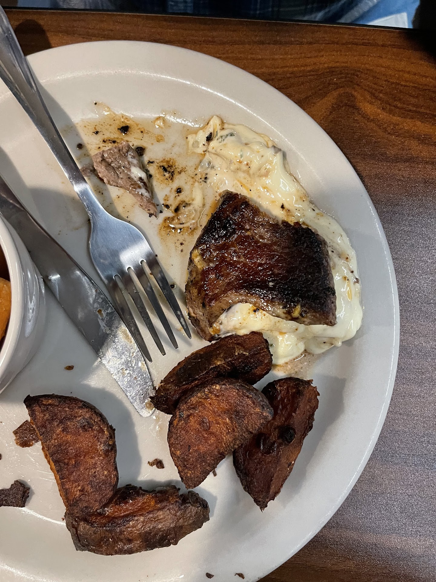We order our drinks and the bang bang shrimp, my family member got a Bloody Mary, my sibling got a Mr. Pibb and I got a Diet Coke. The Diet Coke tasted like every soda but no soda at the same time, I informed the guy something was wrong with my drink and he went and “checked it out” for 10 mins, without offering a different beverage, then when he returned he told me something was wrong with it he didn’t know and then offered me something else. After he returned with our order, we put in our entree orders, 2 orders of Cajun chicken Alfredo, my sibling attempted to order the sirloin but was told it was out of stock. So he ordered the “French Dip”