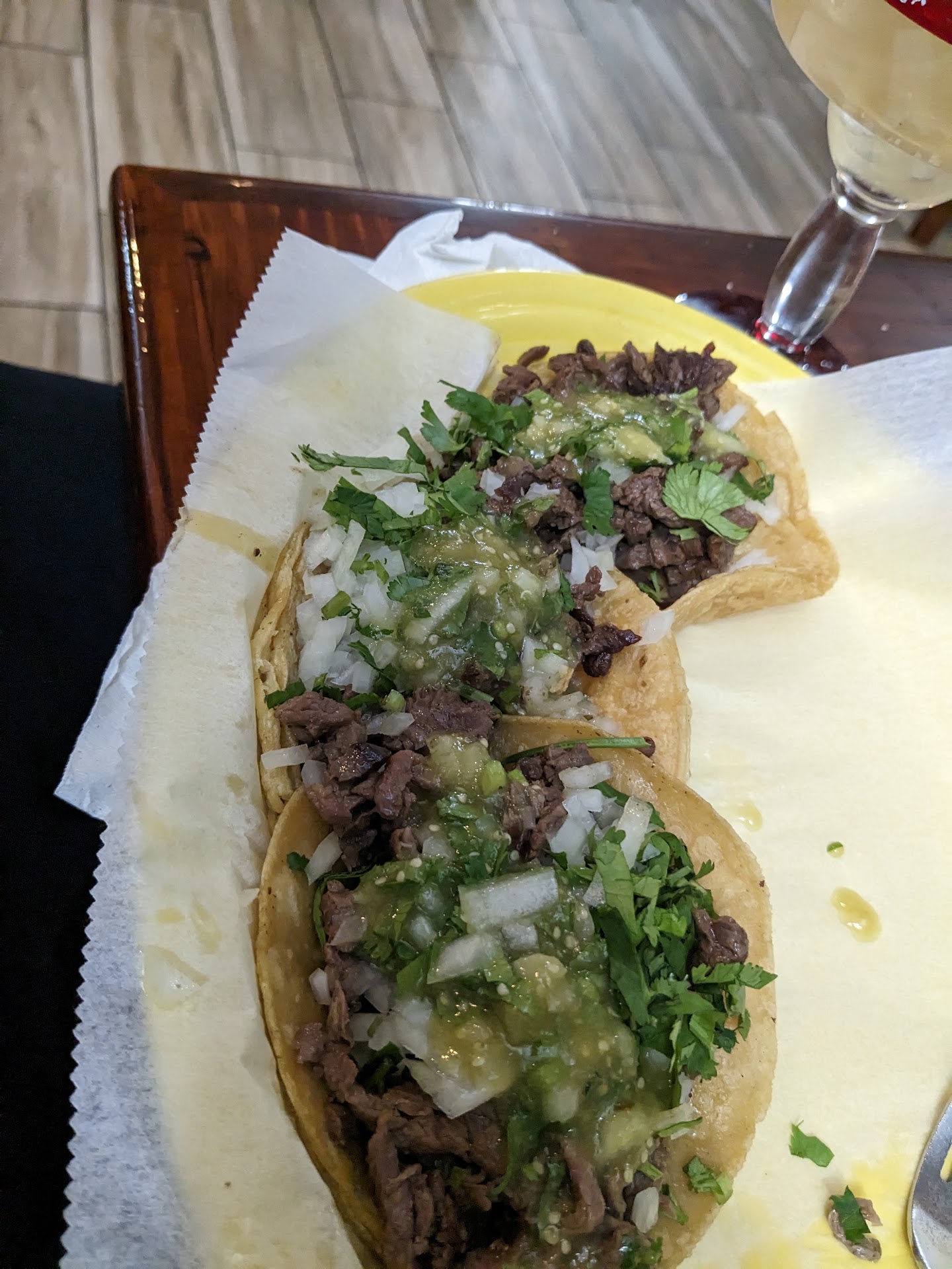 Read moreI stopped here while traveling for work, based on the Google reviews. I'm not sure why so many people have it 5 stars. The dood was exactly what I would expect from an authentic Mexican restaurant- decent enough to eat, but nothing to go out of my way to have again. There were no drink specials on this particular night, and the server seemed confused when I asked. I ordered the blue margarita. I expected it to be frozen, but I was pleasantly surprised when it came on the rocks. It was a little on the strong side, but I prefer them that way. My food came out insanely fast, and very hot. All of it was pretty bland, especially the rice. The atmosphere here is a little awkward. It is in a strip mall, so the space is narrow and it has ceiling tiles and florescent lights. But the most awkward thing is that they were clearly streaming music from Spotify or Pandora because there were random...