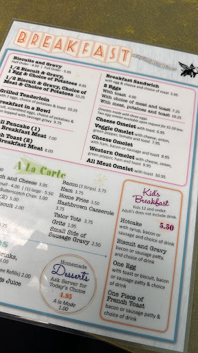 Read moreIt's a litter dinner on the outskirts of town. Haven't eaten there in years since it was cousin's dinner. When I arrived we were greeted immediately and seated. The atmosphere had a very homey vibe. I hate the All Meat Omlete with white toast and an order of grits. Everything was cooked marvelous. The meat inside the omelet wasn't burnt. Waitress and other employees elwere very attentive and kept checking on us. Definitely recommend to people especially if our enjoy a small...