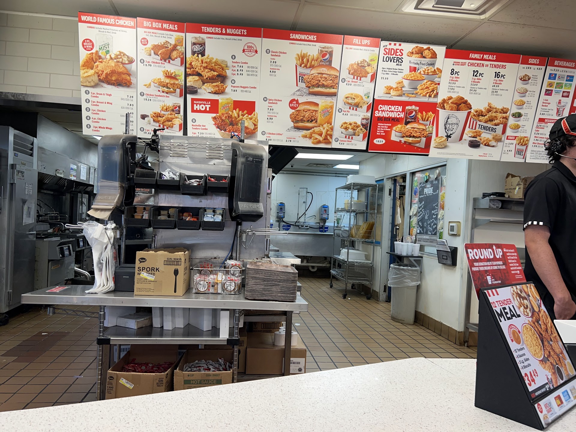 Read moreWhat an awful experience, my husband and I walked in, there was one customer in the store and maybe 1 or 2 cars in the drive thru, We were greeted with instructions to use the kiosk to place our orders as they were "too busy". We tried to use it but the coupon we were using was not on there, so we asked what we should do and one woman came up to the register to ring us up saying it wasn't on those. Then I told her what we wanted this coupon was for a 20 piece of chicken or chicken tenders or half and half, 3 mashed potatoes and gravy, 2 coleslaw and 10 biscuits. We asked to have it have fried chicken and half tenders she tells us she can't ring it up that way, so we said we would take all tenders, that wasn't able to happen either. The ONLY way we could order this was to get just fried chicken half dark half white meat. Then we had to wait forever while watching everyone who came in after us get their food first. One pair was able to order and eat while we waited. Get it was a larger order but this was excessive. Then suddenly we hear a woman ask is someone was waiting for a 20 piece and asked for us to come up to the counter. She pulls two big bags from this container and said she had made it for someone but they hadn't came to get it so she checked the sides and gave it to us but said there's more in there sorry for the wait. I get home and the chicken is all white meat and we don't even like bone in wings. Such a waste. A huge waste, all due to them falsely advertising a coupon they can't even honor. Then they didn't even give us what we paid for. I don't even know what to say but I definitely didn't feel comfortable even trying to clear up any of this up with them. They were not able to keep up and the tension was so high I reckon I will have to call. I had to convince my husband to even go here and I bet you he never does again. He's so upset and I do not blame him, he just spent over $40 for something we didn't even order and waited forever to get it and it was...
