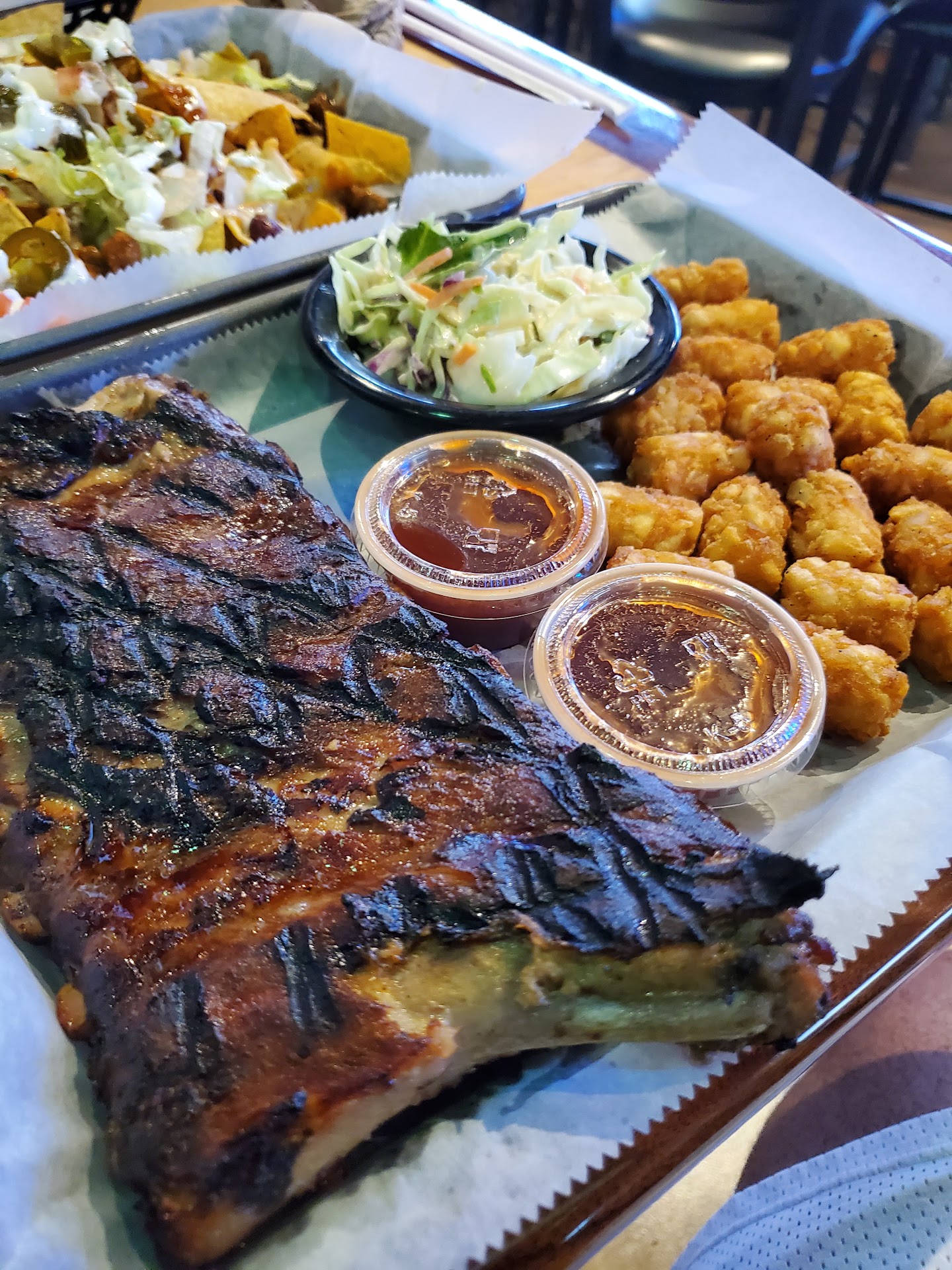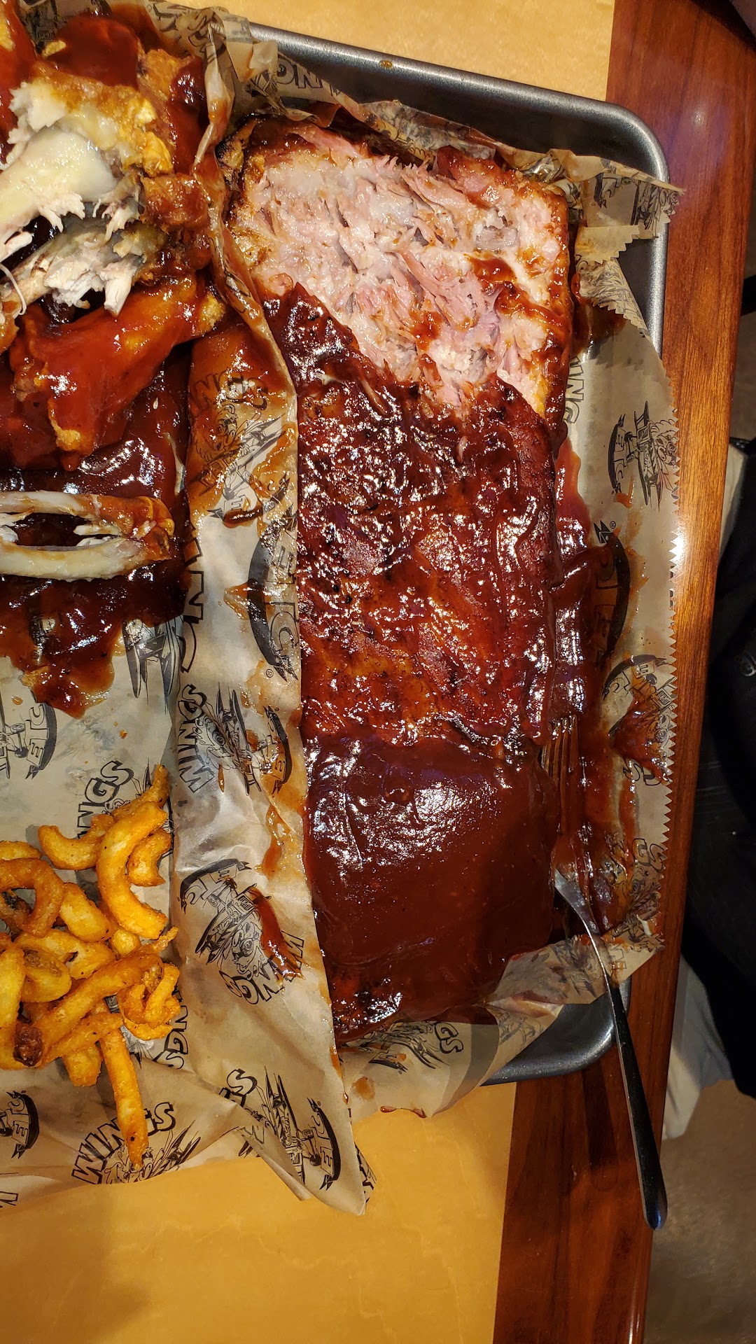 Word of advise is to NOT order the RIBS here... My significant other said that these were the worst cut of meat he has ever touched, once he got through the bottle of BBQ sauce on them.... On a good note, the service was good, and the Mt. Dew was yummy! I really want to be able to rate the overall place higher, but maybe...