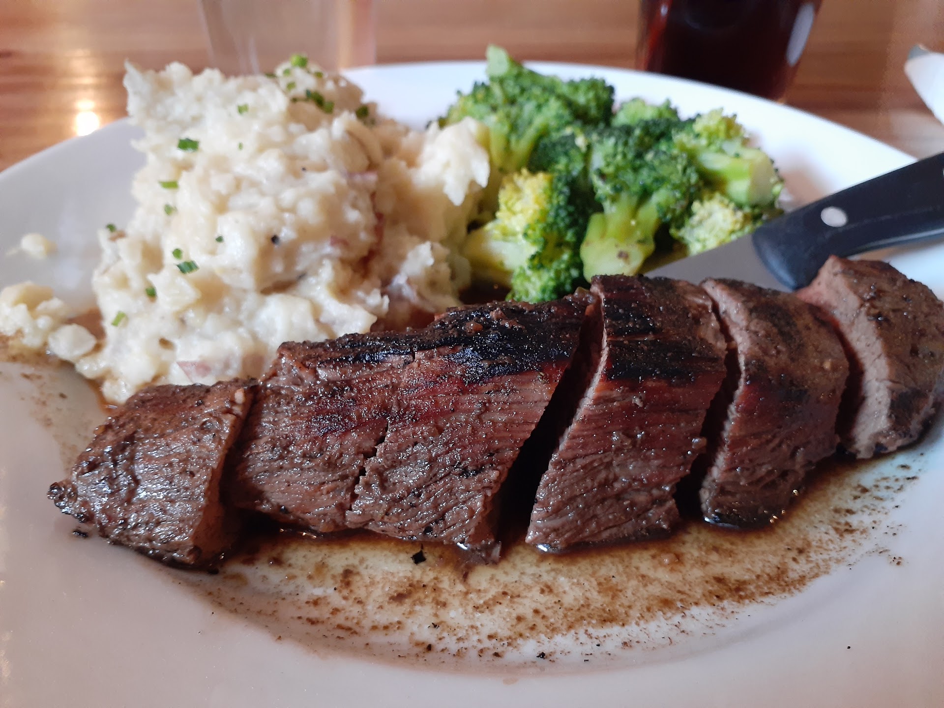 Read moreWhat a fantastic meal and a great restaurant! My friends and I tried the 10 oz petite filet. I chose buttered broccoli and garlic mashed potatoes for my 2 sides. My friends had salads and asparagus. The meal also comes with a delicious dinner roll. Everything was AMAZING!! The steak was tender, juicy, and so flavorful! The broccoli and garlic mashed potatoes were perfect! Portion sizes are large and very generous. I really didn't have room for dessert, but...oh well! When a scrumptious rhubarb crisp is on the menu, you just have to try it! Our server was also very nice and friendly, as was our hostess. Definitely recommend checking out this restaurant! But I do suggest making reservations as it...