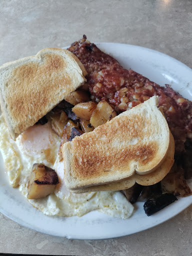 The food arrived and the toast was buttered perfectly. If you prefer dry toast make sure to ask for that up front. I ordered two eggs over easy and corned beef hash with homestyle potatoes. My husband ordered chicken fried steak and sunny side up eggs with the hash browns. Both dishes were cooked to perfection.