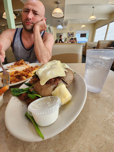 Read moreOk the food was really good and well made! It would have been much better if served to us hot instead of cold. I think this restaurant will be good after âgrowing painsâ and has lots of potential. We walked in and waited to be seated. After about 5 minutes the girl finally looked up at us and said to seat ourselves, even though there were no signs about seating. The waitress was super sweet and nice and put in the effort. However the food took 30 minutes to arrive and we were there at 11 am on a Thursday, not busy at all. No one ever came back to check on us or refill the water or soda. When we needed more napkins we went and got them ourselves. It felt like they were short staffed or overwhelmed or just not up to speed yet. When the food arrived cold, we didnât want to wait another 30 minutes so we ate a little bit and took most of it home to heat up and eat later. One interesting and notable feature-the booths are very very wide. The table was at least 18 inches from me on the seat and I am not a small person :) so I had to shimmy up to the edge or else each bite was being carried long distance from the plate to my mouth. I wish there was this much room on an airplane seat. I am including a picture in case this helps anyone and/or sometimes seating is too small. Over all I might try this place again in about 6 months and hopefully it will be more...