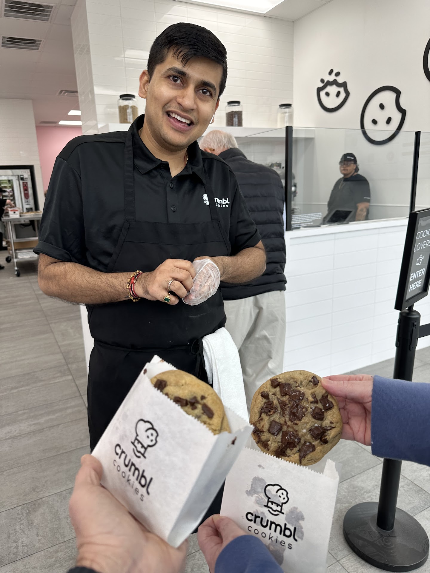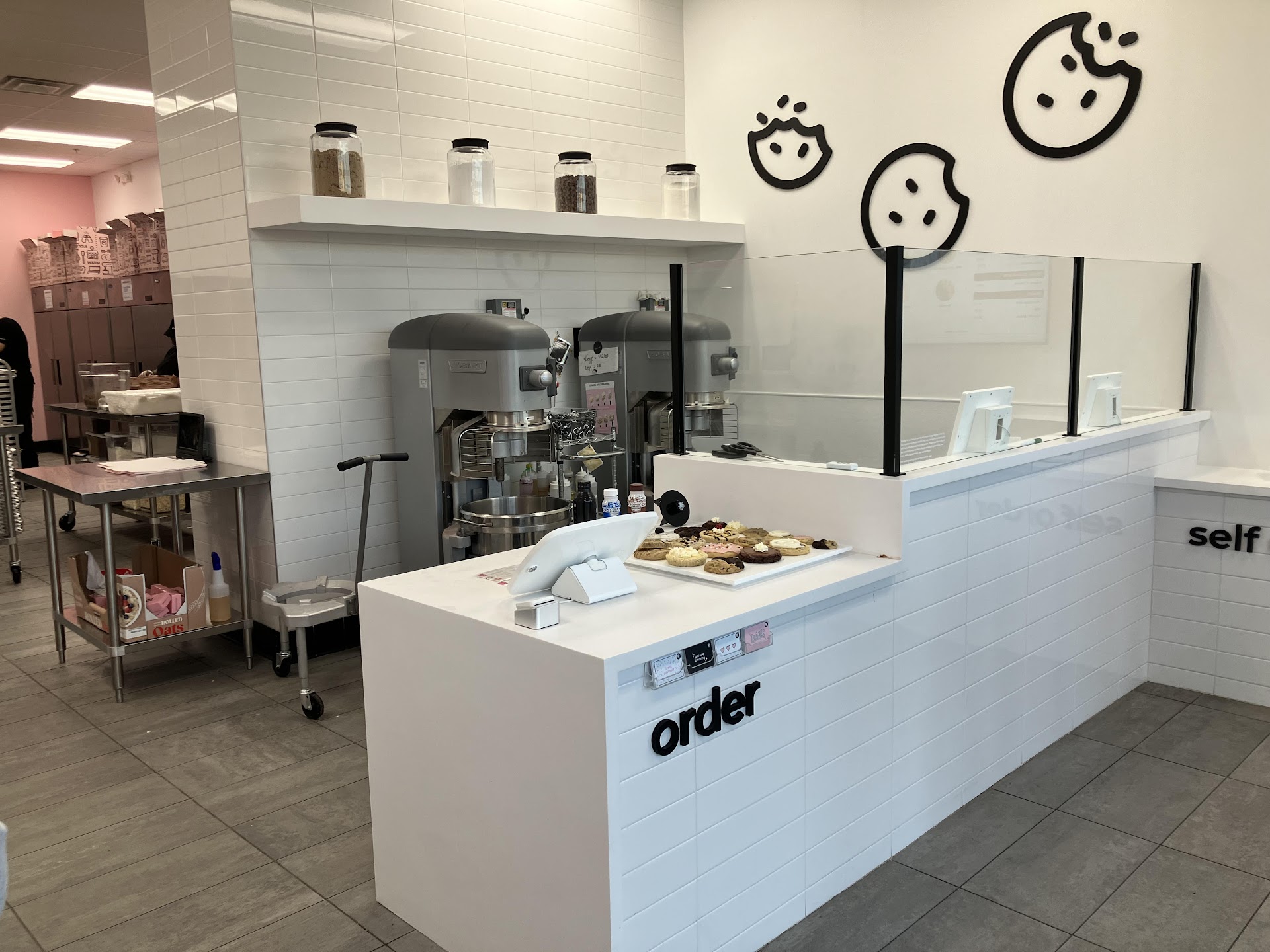 I order 2 dozen cookies for $100 and received a complimentary cookie for the grand opening. Took 25 minutes of standing at the counter for my order to be done after texting “Here” in the app.