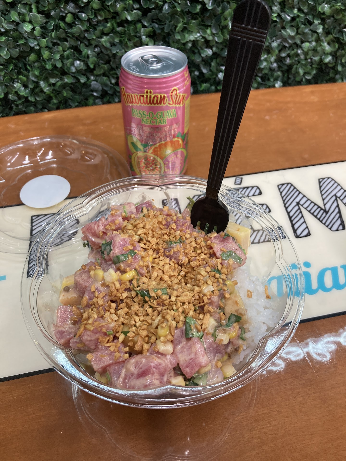 I’ve visited other locations and this by far was the worst!! I was very disappointed with the quality of the ingredients of my bowl- tuna and salmon were basically frozen, and the rice was steamed with way too much water. When I came in I was not greeted for almost 10 minutes, and when the girl finally arrived she was on a personal phone call on speakerphone that she quickly had to turn the volume down on. Another man that worked there “snuck” back in through the back, not sure if he was on a smoke break or anything, but both employees were completely inattentive and appeared less than ideal hygiene-wise. The floors were not swept and mopped properly as my shoes were sticking to the floor in front of the food line.